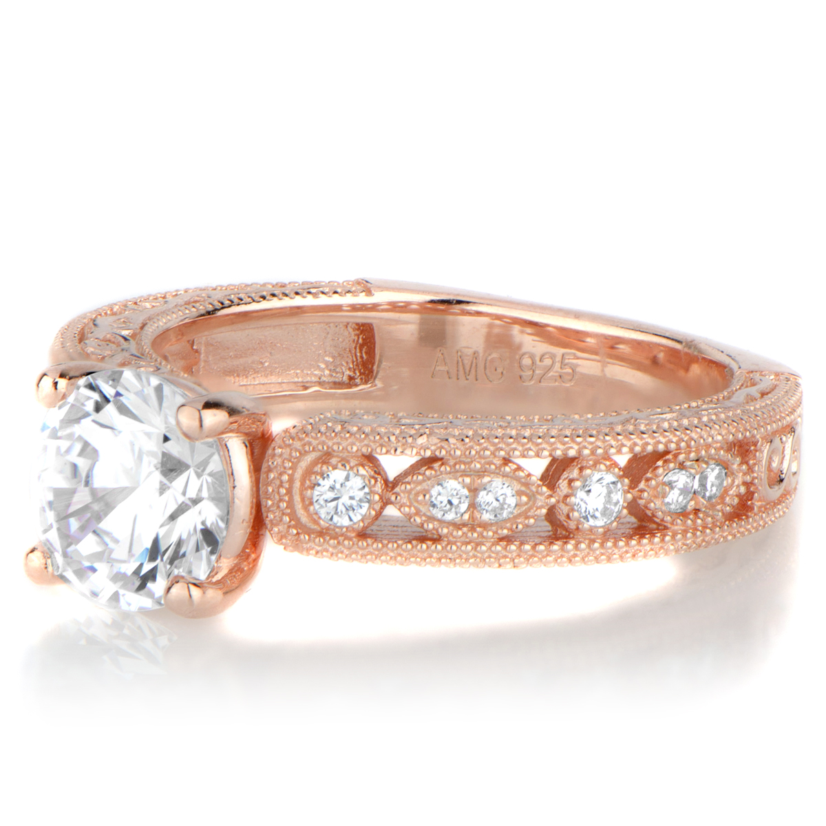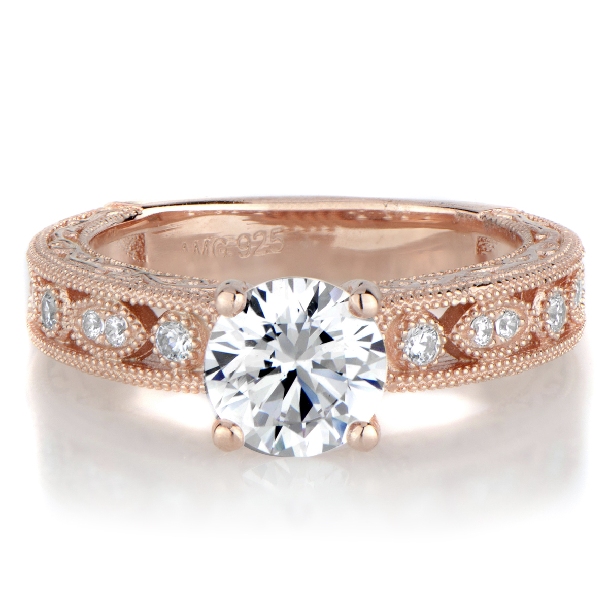 Maya's Round Cut Antique Style Rose Goldtone Engagement Ring