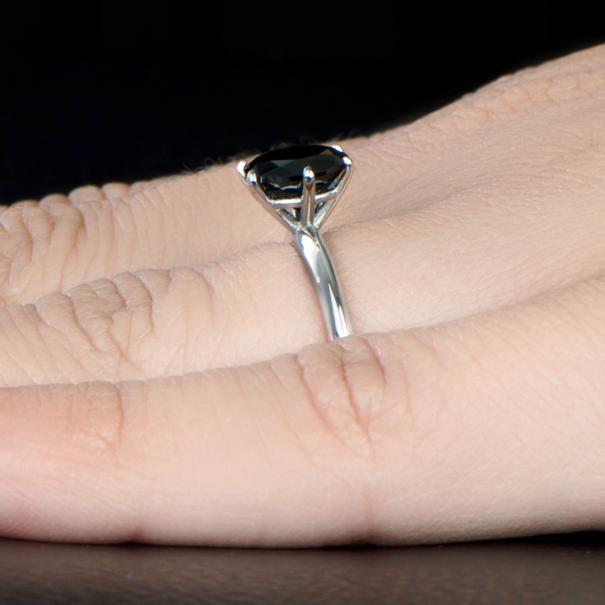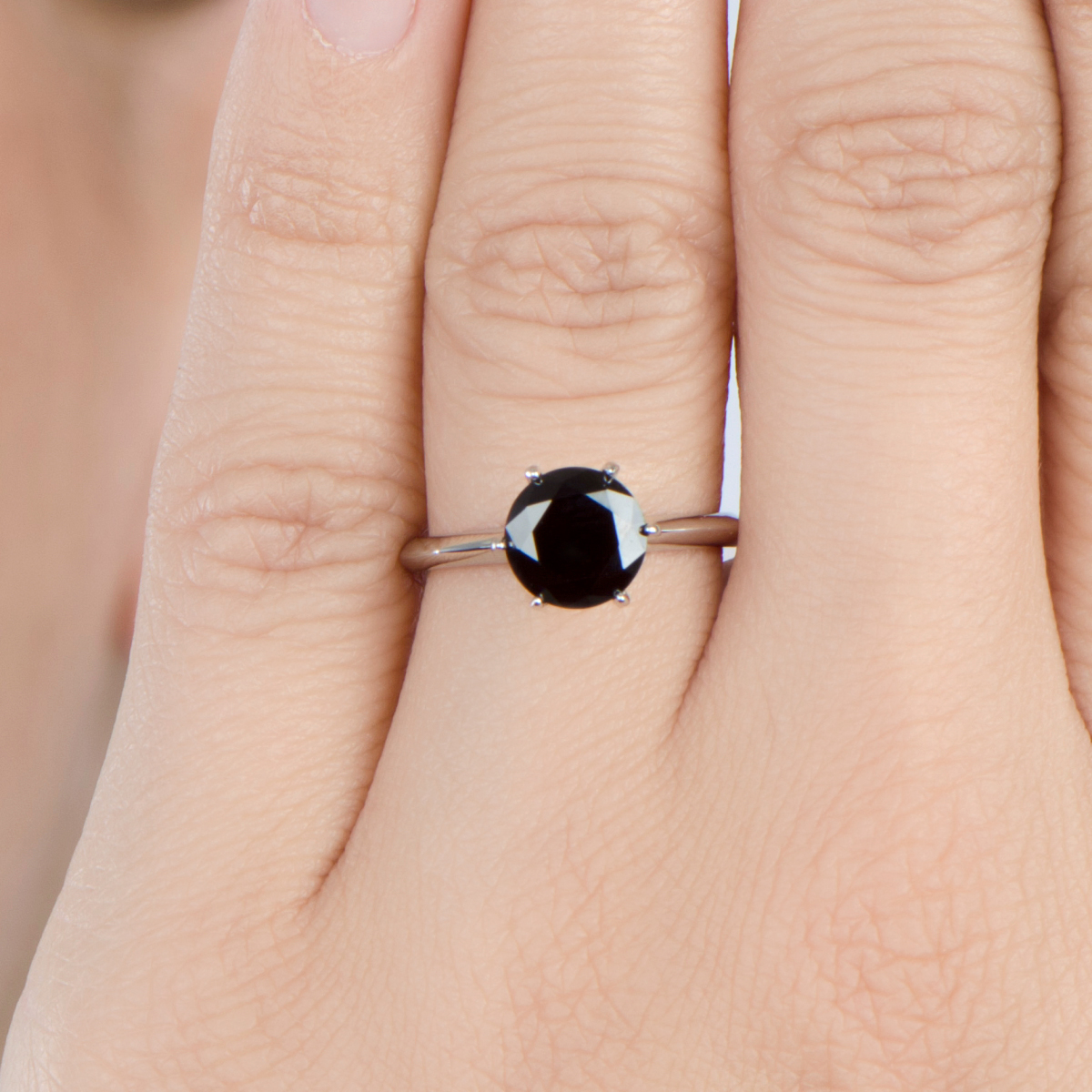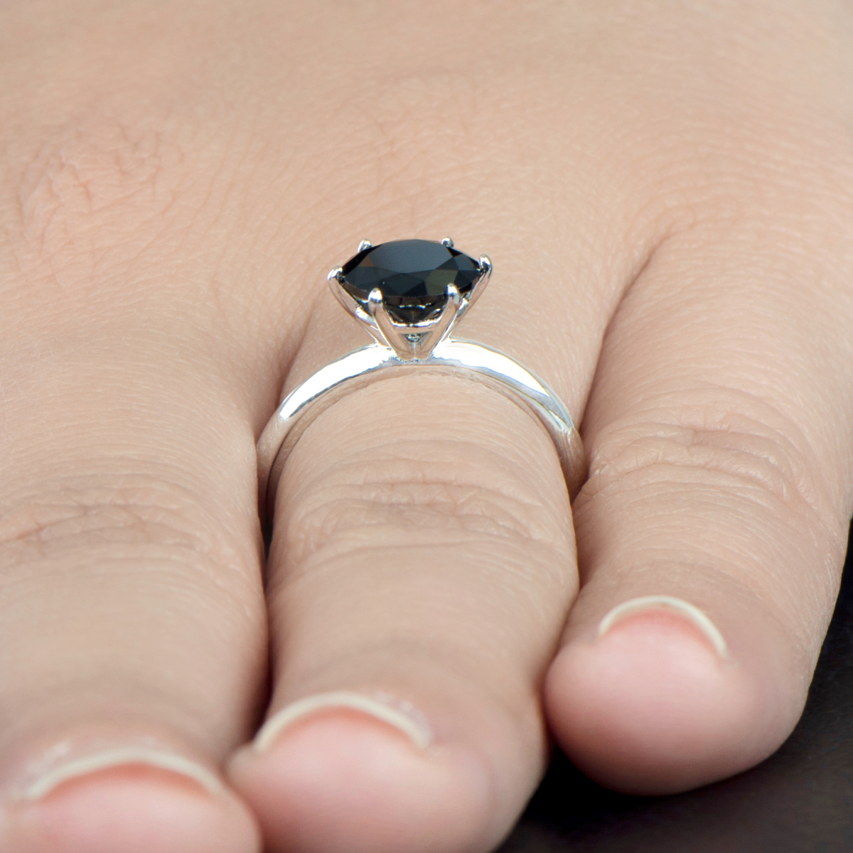 The 925 sterling silver engagement ring features a gorgeous black round cut CZ measuring 1.5-carats.