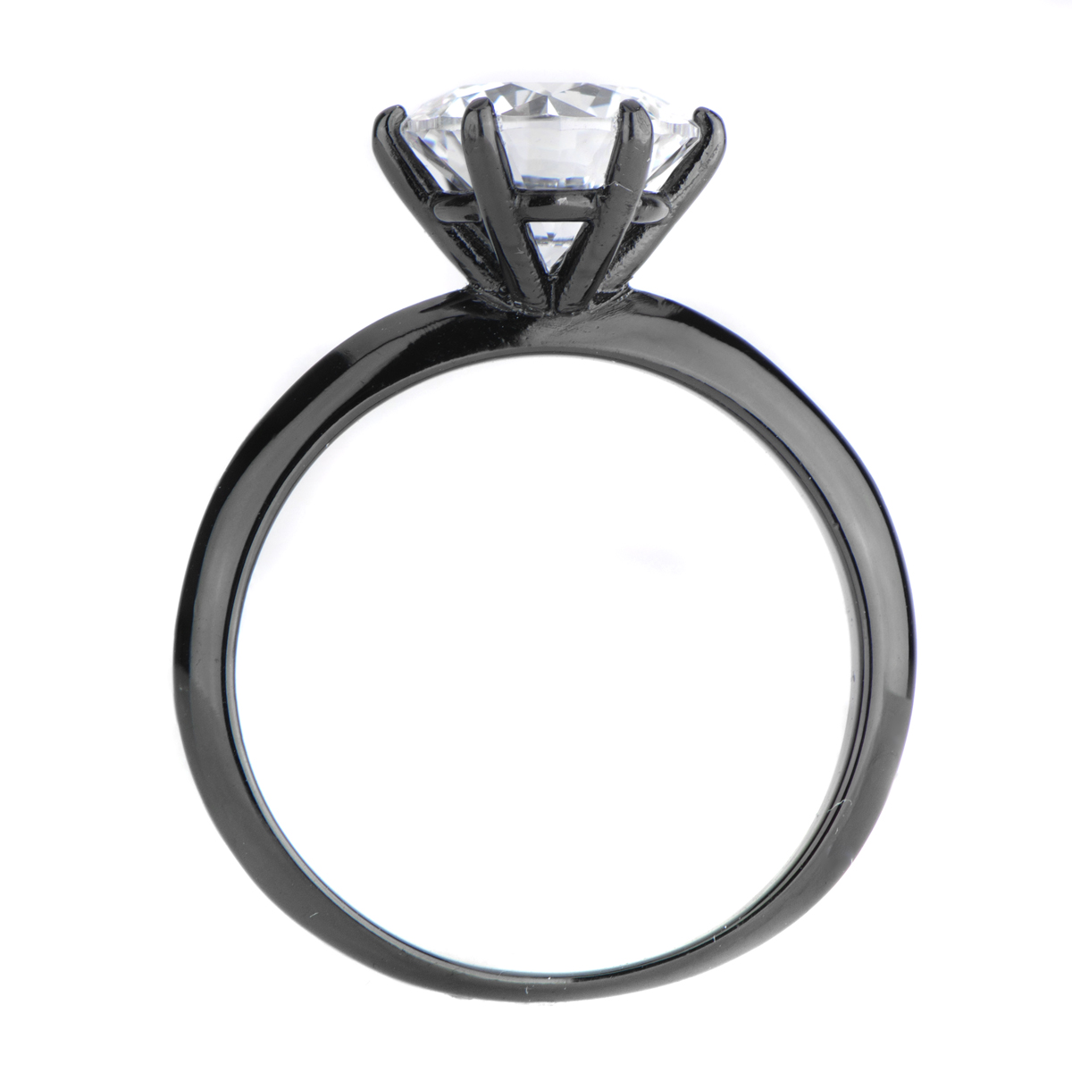 - Polished black plated engagement ring with cubic zirconia. Constructed from sterling silver.