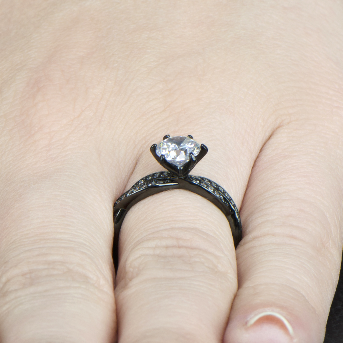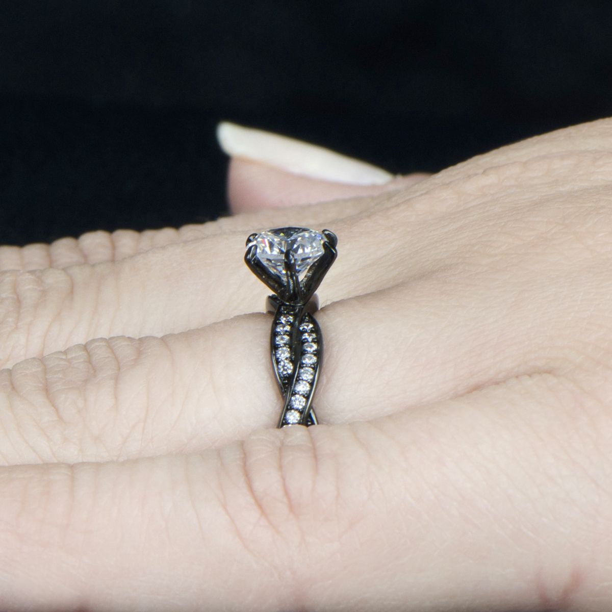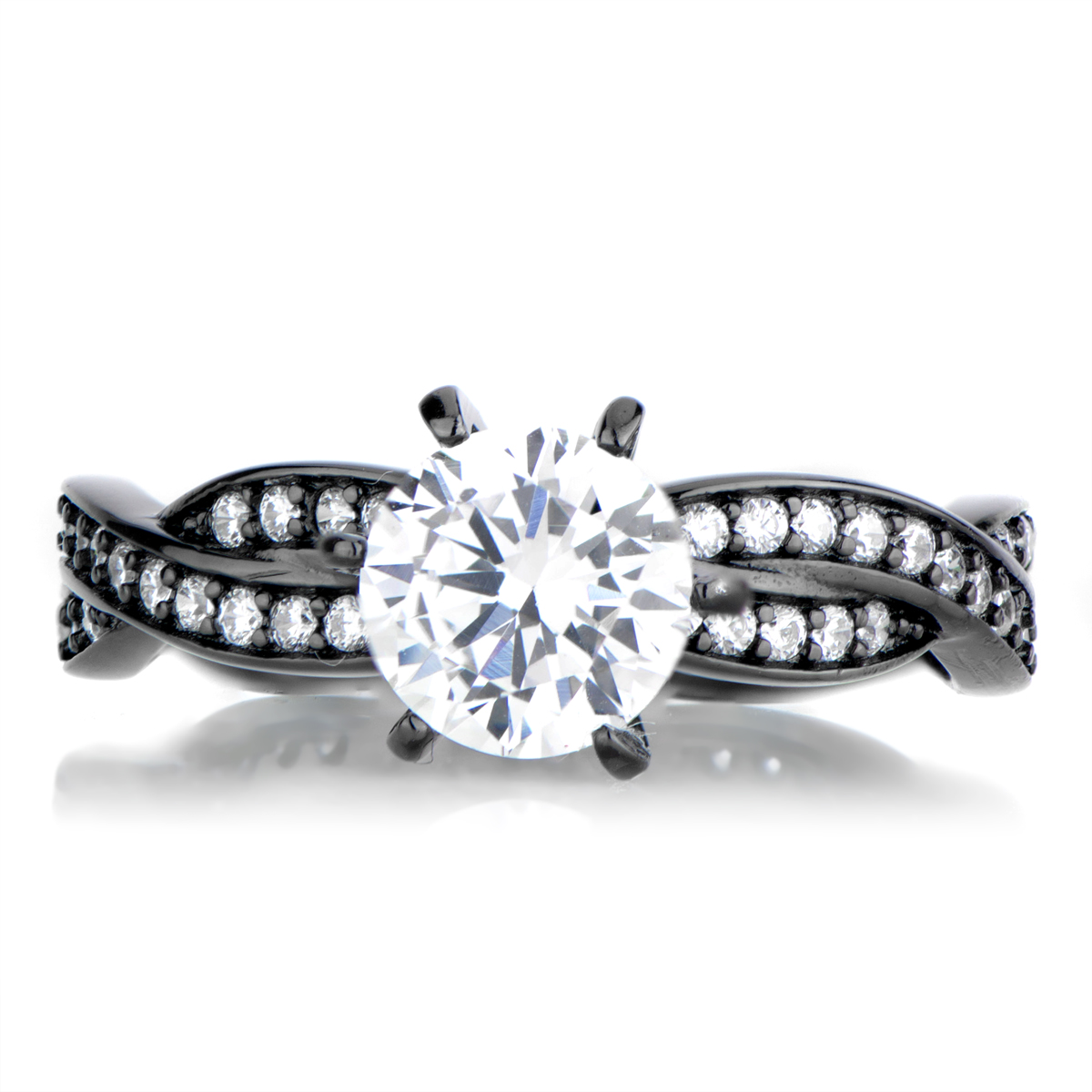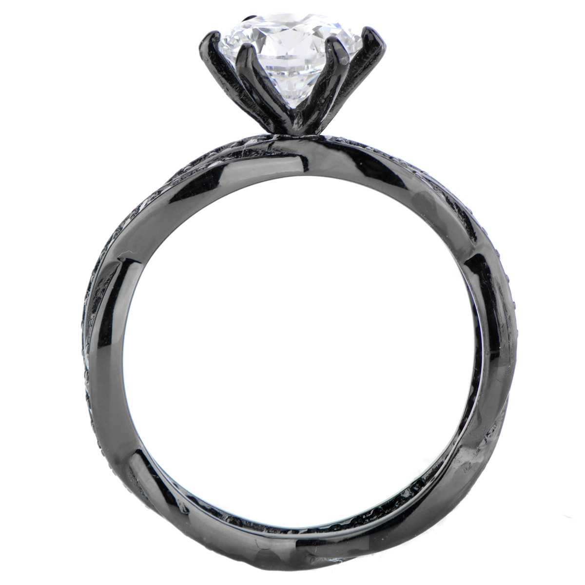 Devera's Black Plated Twisted CZ Engagement Ring