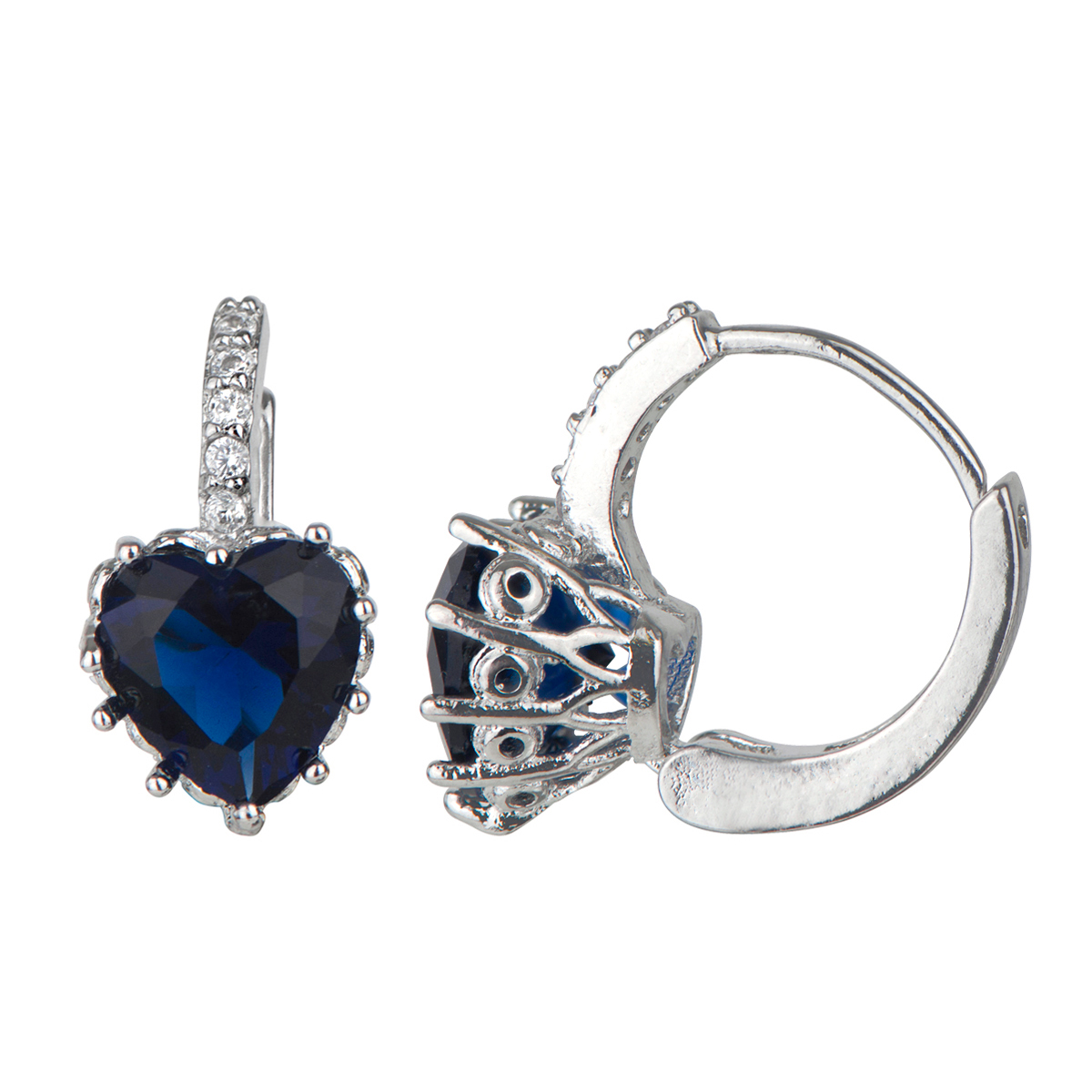 - The rich blue tone of the heart shaped crystal combined with the 10 prong setting make these cz heart earrings a cherished gift.