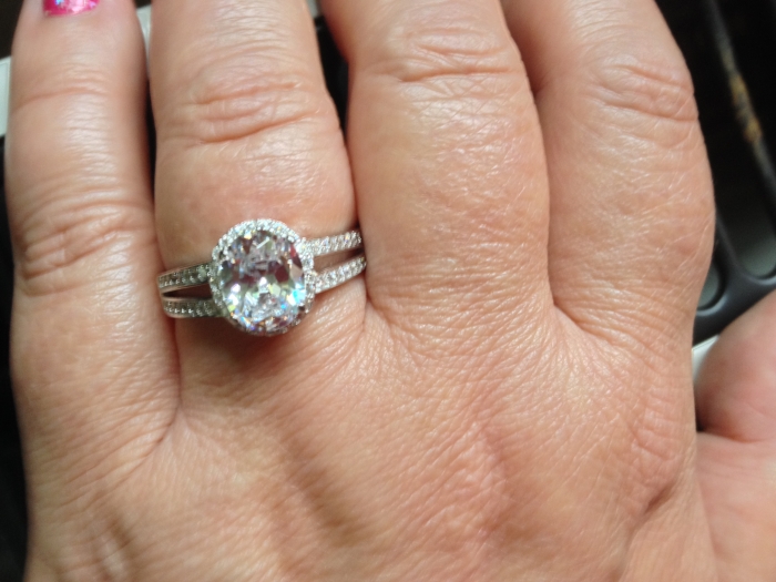 COMMENT: I loved the version of this with the black stone, so when I saw it came in clear, I couldn't resist! by R H 2/25/2014 COMMENT: Just loved it by paul s 1/3/2014 COMMENT: It looks like my real engagement ring that I lost a couple of weeks ago. by Ginger H 1/3/2013 COMMENT: Too beautiful. I hope it is as nice when it arrives. Plus with the 30% savings how could I say no! by Kimberly G 11/23/2012 COMMENT: Due to weight loss, my diamon ring slipped off one day, could not find. Feel awful. This one is as close as it gets. Cannot afford to get another, insurance refused to cover the loss. by Kirsten H 10/19/2012 COMMENT: It's classy & stylish without being too big by Roxana B 10/7/2012 COMMENT: because its gorge!! by daniele c 9/19/2012 COMMENT: This is an exact replica of my engagment ring! Great to travel with! by Patricia P 8/7/2012 COMMENT: to have a new look rather than my usual ring. by C R 5/9/2012 COMMENT: love it by A F 4/30/2012 COMMENT: It looked beautiful by Nina B 12/11/2011 QUESTION: Hi everyone! My boyfriend recently proposed, but he knew that I had a specific type of ring in mind that I want, so he wanted to let me pick it out. I am in law school so money is very tight right now. This is very similar to a ring I fell in love with at a jewelry store, but we cannot not afford the $5000 right now. I decided that I would rather have a CZ that I love than a diamond ring that I try to tolerate. The only thing that worries me is that the ring is sterling silver. I have sensitive skin and alot of metals cause a rash on my skin, plus I have heard sterling silver tarnishes easily and leaves a discoloration on the skin. So my questions are: 1. Has anyone had any problems with the silver tarnishing quickly 2. If anyone else has sensitive skin, does the ring cause any type of rash or blemish on your finger 3. Has anyone had any problems with the stones falling out? by Beth J 6/20/2011 ANSWER: Hi Beth, Congratulations on your engagement and i commend you on doing a VERY smart thing regarding the ring. Best of luck to you on your upcoming wedding! Now to answer your questions: 1. silver usually tarnishes when it is left exposed to air for a while, so if you're not going to wear it for more than a few days, wrap it up in tissue paper or with a little piece of that black anti tarnish paper that soemtimes comes with silver jewelry. If you're planning on wearing it everyday, as most of us do, the constant hand washing, etc. will keep it looking like new. This band looks like platinum, so it will look beautiful. 2. I also have sensitive skin to some alloys, my husband brought me back a ring from Greece that was 10K Gold and it made my finger itch like crazy! Yet, I've had no problems with SS. 3. So far, no stones have fallen out and I am very hard on my hands. I not only type a lot, but I am sort of careless andalways rushing and hitting my rings and this has held up beautifully. I hope this information helps you and again the best of luck to you and your boyfriend on your engagement and to you on your law career. by Teri P 6/22/2011 ANSWER: Haven't had any issues with skin sensitivities, though that probably depends on the individual wearing it as well. We did have an issue with the stones, we thought that one had fallen out, but when I took it to a jeweler he looked closely at it and determined that the stone hadn't actually fallen out, it was simply crooked and looked like it had. Hope that helps... by Matthew S 6/20/2011 ANSWER: 1. This ring did not tarnish and I have had it for about 7 months. 2. No rash for me, but I don't have sensitive skin. 3. No stones have fallen out yet but I do think the small diamonds on the band on each side are incredibly tiny and almost look dark. They just don't sparkle at all. The center stone and diamonds surrounding it look good, though. by susie P 6/20/2011 |