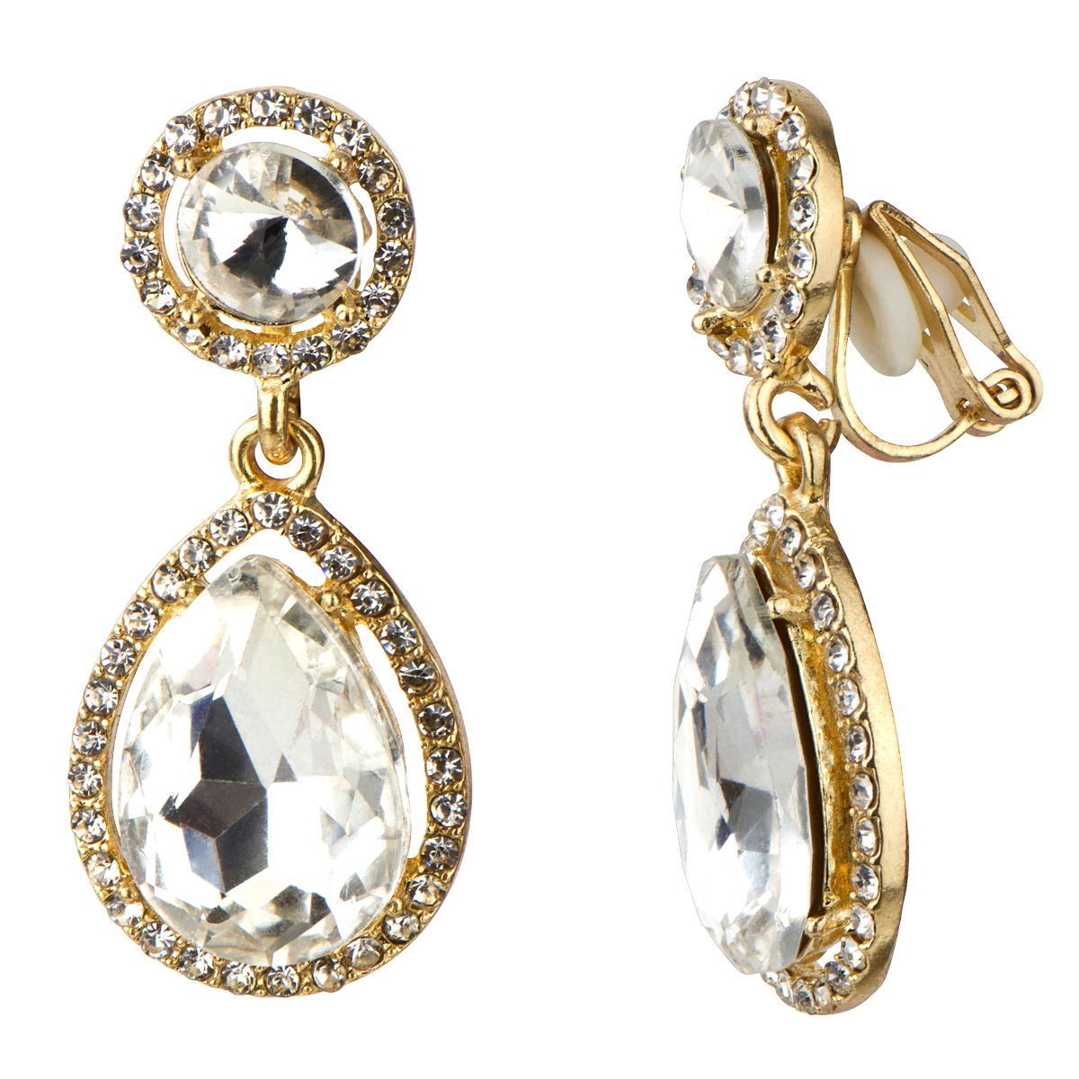 Bailey's Goldtone Rhinestone Peardrop Clip-on Earrings