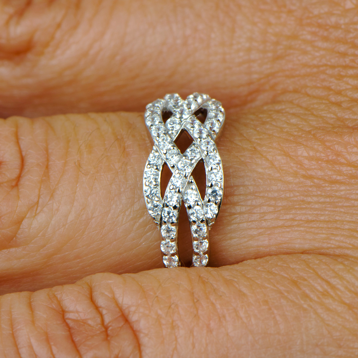 - Get tangled up in the beauty of Natty's Criss Cross Knotted CZ Band.