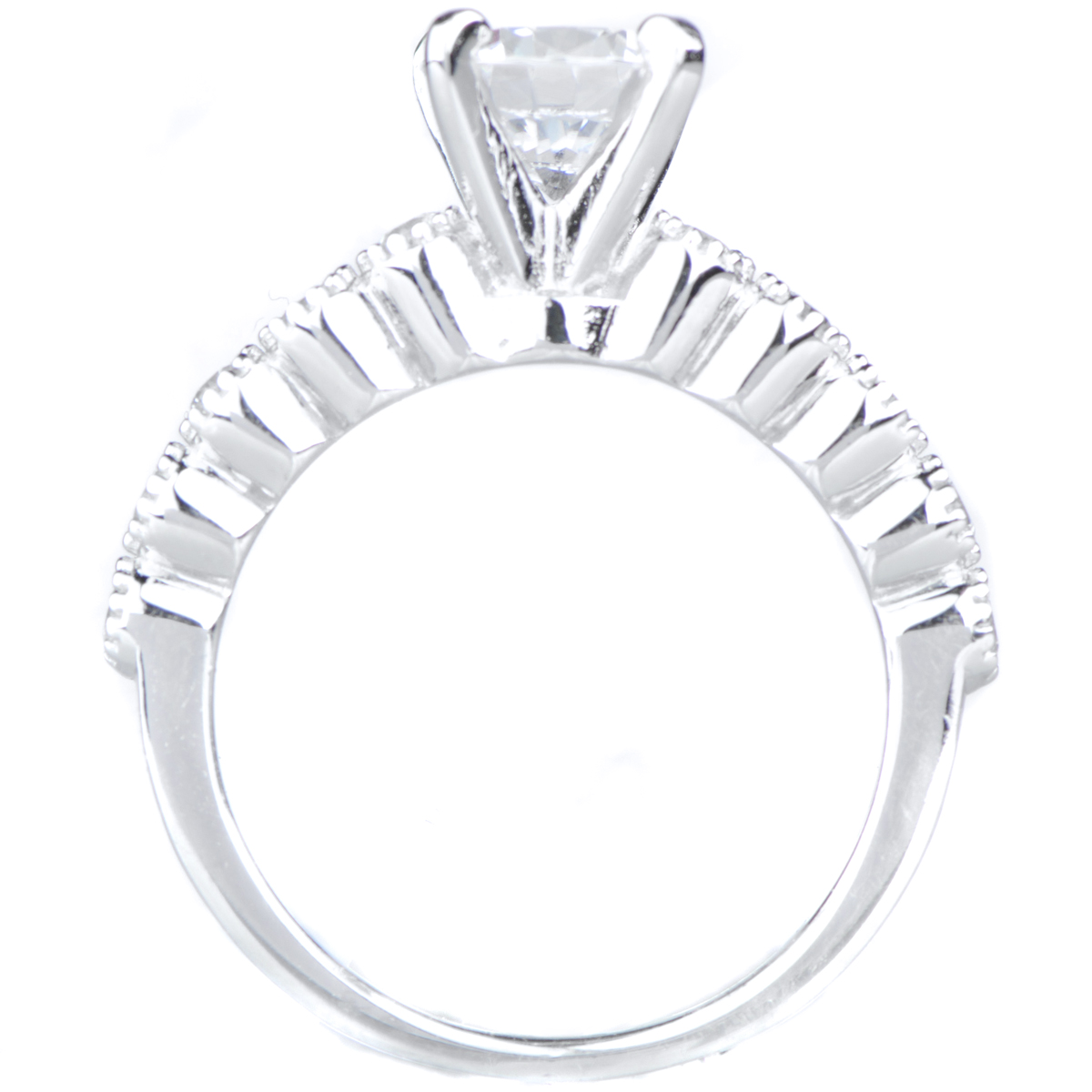 | Carat: | Round center CZ approx .85 carats, Round side CZ approx .02 carats |