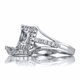 - The unique sterling silver ring features a split band design with sparkling CZs throughout.