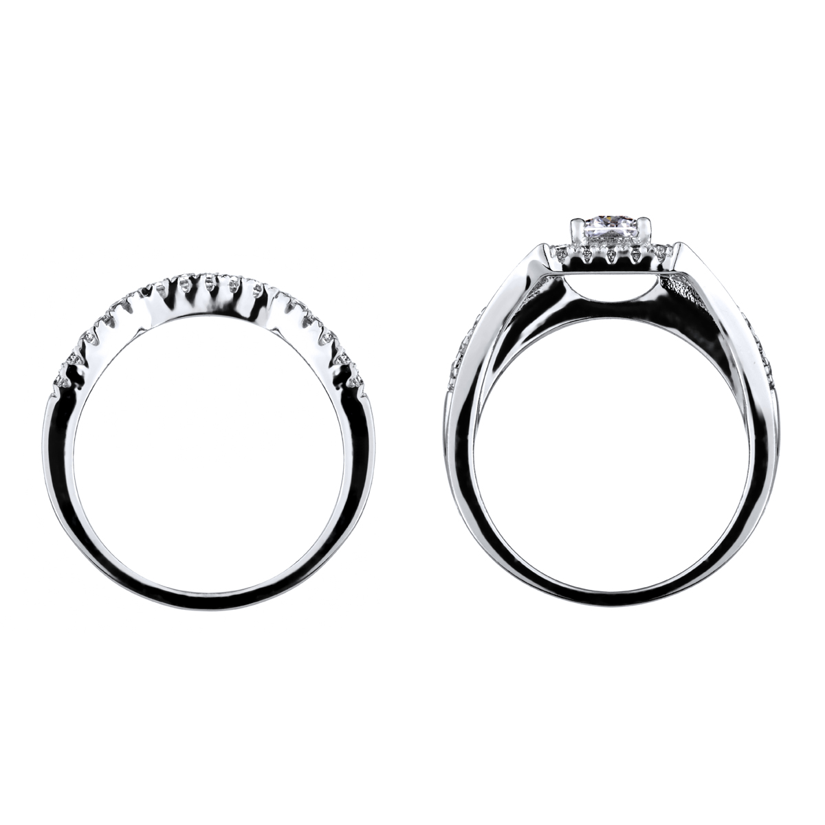 - CZs extend partially down each side of the band between the split band design.