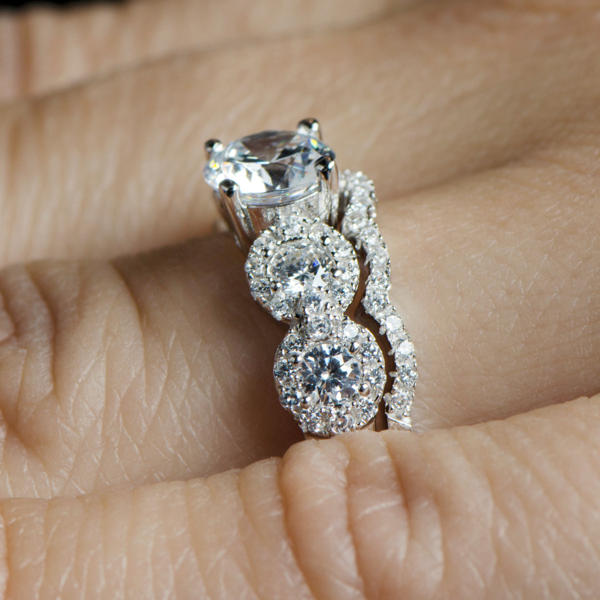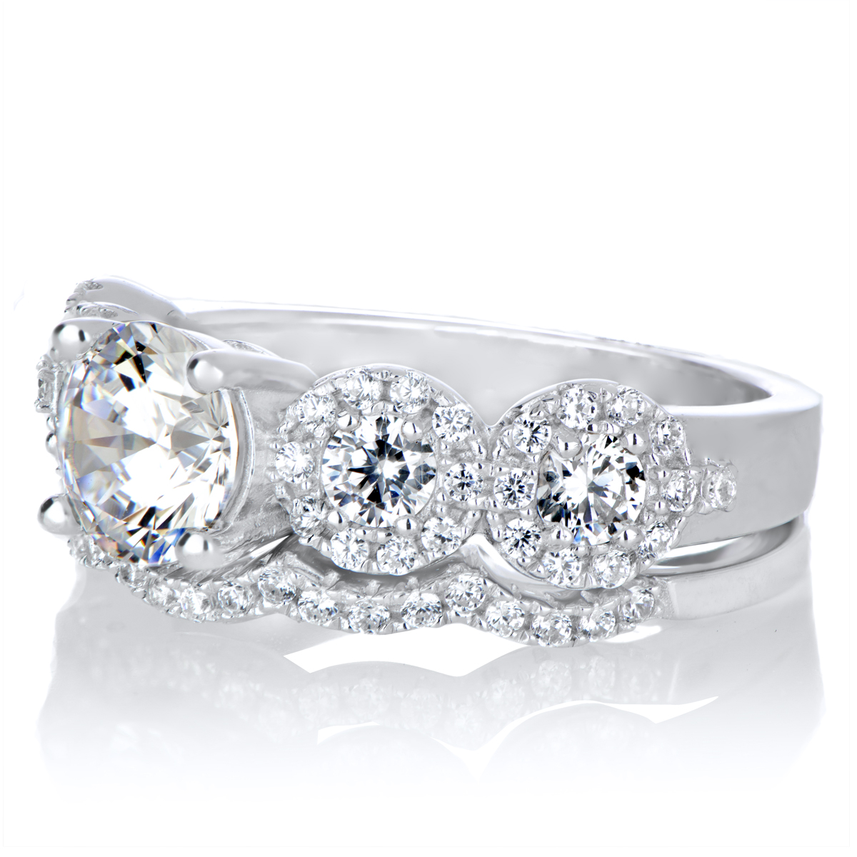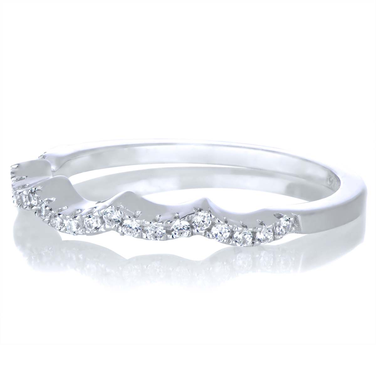 - The .925 sterling silver wedding ring set will take your look to new heights with its 5 round cut CZ stones and accompanying CZ ring guard.