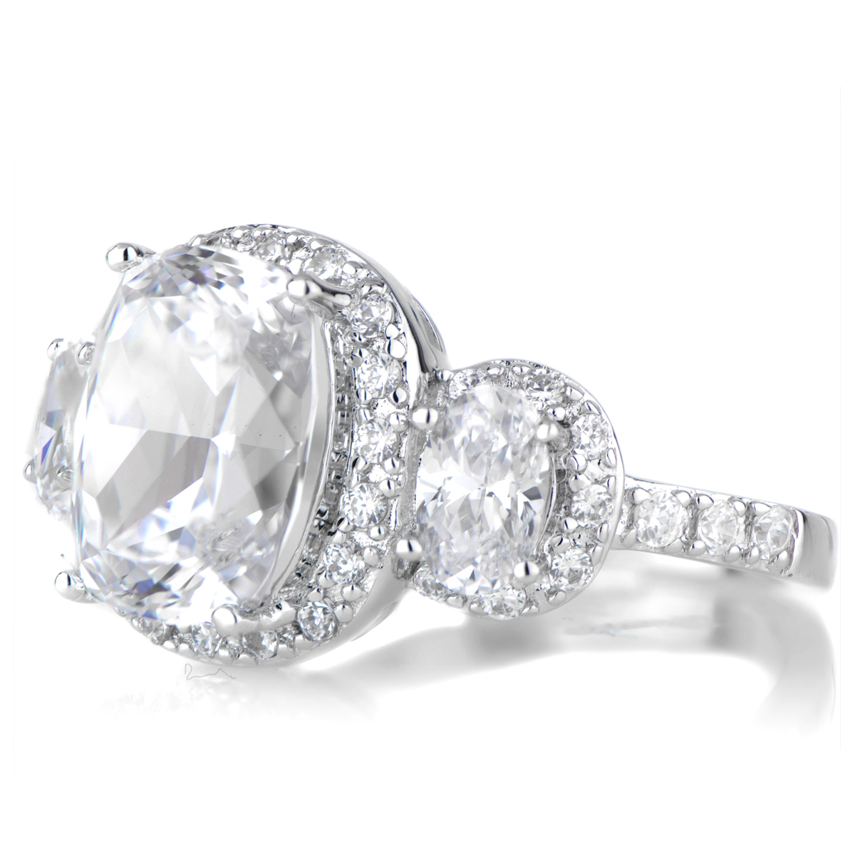COMMENT: my fiance likes the style by ronald j 1/2/2013 COMMENT: Looks beautiful! Hope it wont turn my finger green. I don't have allergies. by lisa P 7/28/2012 QUESTION: I LOVE this ring, but have tiny fingers, I would need a size 4. Is there any way to get a size 4 If not, is this ring size able could I take it to a jeweler to be sized down Thsnk you! by Brittany R 3/3/2013 STAFF ANSWER: Hello Brittany, Thank you for your inquiry. Unfortunately, we are unable to get this particular style in a size 4. We would suggest taking a photo to a local jeweler to see if they're able to resize it for you. Please note that jewelry that has been altered is not able to be returned/exchanged. We suggest taking a look at our size 4 rings here: http://www.emitations.com/si4co1.html Happy Jewel Hunting! by Eugene W 3/4/2013 QUESTION: How real does the ring look Have the stones ever fallen out? by Jessica H 10/17/2012 ANSWER: I bought it and LOVE it! Sparkles like crazy....doesn't turn finger green and my stones are secure. by CJ J 2/27/2013 ANSWER: Ring looks very real comared to other rings from other sites. It sparkles and is the right amount of bling. My stones have never fallen out, and I have worn it to the park, cooking, playing football and baseball with my sons. Highly recommend! by Linda M 11/26/2012 ANSWER: Don't buy it! Looks beautiful, but the stone fell out after two days. I took the ring off to do dishes, showering, etc, and still fell out. by lisa P 10/19/2012 STAFF ANSWER: Hello and thank you for your inquiry. If you are not 100% satisfied with this product upon receipt, we will gladly accept it back for a return/exchange. We have a great 60 day return/exchange policy, which you can view here: http://www.emitations.com/re.html If you need additional assistance, give us a call at 1-800-652-5002. Happy Jewel Hunting! by Eugene W 10/18/2012 QUESTION: What carat range would this ring be equivilant to Both the center stone and the ring as a whole. I'd like to know so I can have an idea of how it will fit on my own finger before I order it. by None N 4/22/2012 STAFF ANSWER: Thank you for your email. You can view carat information by clicking on the 'Descriptions' tab on the product page. The carat size of the stones are as follows: Cushion cut CZ approx 2.8 carats, Oval cut CZ approx .3 carats. If you receive this item and you are unhappy with it we would be glad to accept the item back for a return/exchange. We have a great 60 day return/exchange policy: http://www.emitations.com/re.html Happy Jewel Hunting! by Eugene W 4/24/2012 QUESTION: Hi, i ordered this and the ring is beautiful, it's so beautiful my wedding band can't compare. What should i buy to go with this ring I would also love to get a wedding set , say a 2 karat set to add to my collection. \I have to say your shipping is amazing, i received my ring in 2 days, thank you right in time for vacation!!!!!! Nicole by None N 4/14/2012 STAFF ANSWER: Hi Nicole, Thank you for your inquiry. We are so happy to hear you received this ring and that you love it! We would recommend our Caprice's to go with this ring. It's one of our most popular eternity band rings. You can view it here: http://www.emitations.com/caulthczetba.html Also, you can take a look at our other Eternity Band Rings here: http://www.emitations.com/etrincol.html Happy Jewel Hunting! by Eugene W 4/17/2012 QUESTION: I am thinking about ordering this ring but I don't want to end up being disappointed if the band of this ring ends up changing colors and becomes unwearable? by None N 3/21/2012 ANSWER: I wear this all the time when I travel and have not had any problem with the band changing color. I get lots of compliments on the ring. No one can tell it isn't real. My only issue is that the prongs sometimes snag on things. by Jessica S 5/11/2012 ANSWER: I love the look of the ring, but it turned my finger green almost right away. I have not had a problem with any similar rings from a different online store, so I know it isn't the "allergic reaction" they mentioned before. I had to cover mine with clear nail polish so I could wear it. It's a gorgeous ring, but I'd buy it elsewhere. by Samantha H 4/12/2012 STAFF ANSWER: Thank you for your inquiry. If something like what you described were to happen we are more than happy to assist you with options. We have a great 60 day return/exchange policy which you can view here: http://www.emitations.com/re.html Give us a call at 1-800-652-5002 if you need additional assistance, we are more than happy to help! Happy Jewel Hunting! by Eugene W 3/22/2012 QUESTION: Is the metal used in this ring just silver tone or is it sterling silver and marked with the the number 925 stamped on the inside? by None N 3/9/2012 STAFF ANSWER: Thank you for your inquiry. This item is .925 sterling silver & rhodium electroplated and you can view this info by clicking on the 'Descriptions' tab on the product page. We have a great 60 day return/exchange policy if you're unhappy with the item. Simply give us a call at 1-800-652-5002 if you need additional assistance. Happy Jewel Hunting! by Eugene W 3/12/2012 QUESTION: Will this ring eventually turn my finger green? by Bella C 1/9/2012 ANSWER: This ring has yet to turn my finger green, but I do not wear it everyday. by Jessica S 1/30/2012 ANSWER: I'd also like to point out that I am not allergic to anything, and I have no problem with other rings. The band seems to be "peeling" or corroding. : by Samantha H 1/29/2012 ANSWER: The ring is gorgeous and sparkly, and has a very realistic look. I love the design, it is very elegant. Unfortunately, it started turning my finger green almost right away, so now I only wear it occasionally. It sucks, because I adore this ring so much and would wear it every day if it didn't destroy my skin! by Samantha H 1/29/2012 STAFF ANSWER: Hi Bella, Thank you for your inquiry! This finger shouldn't turn your fingers green unless you have an allergy to certain type of metals. We did a gr
