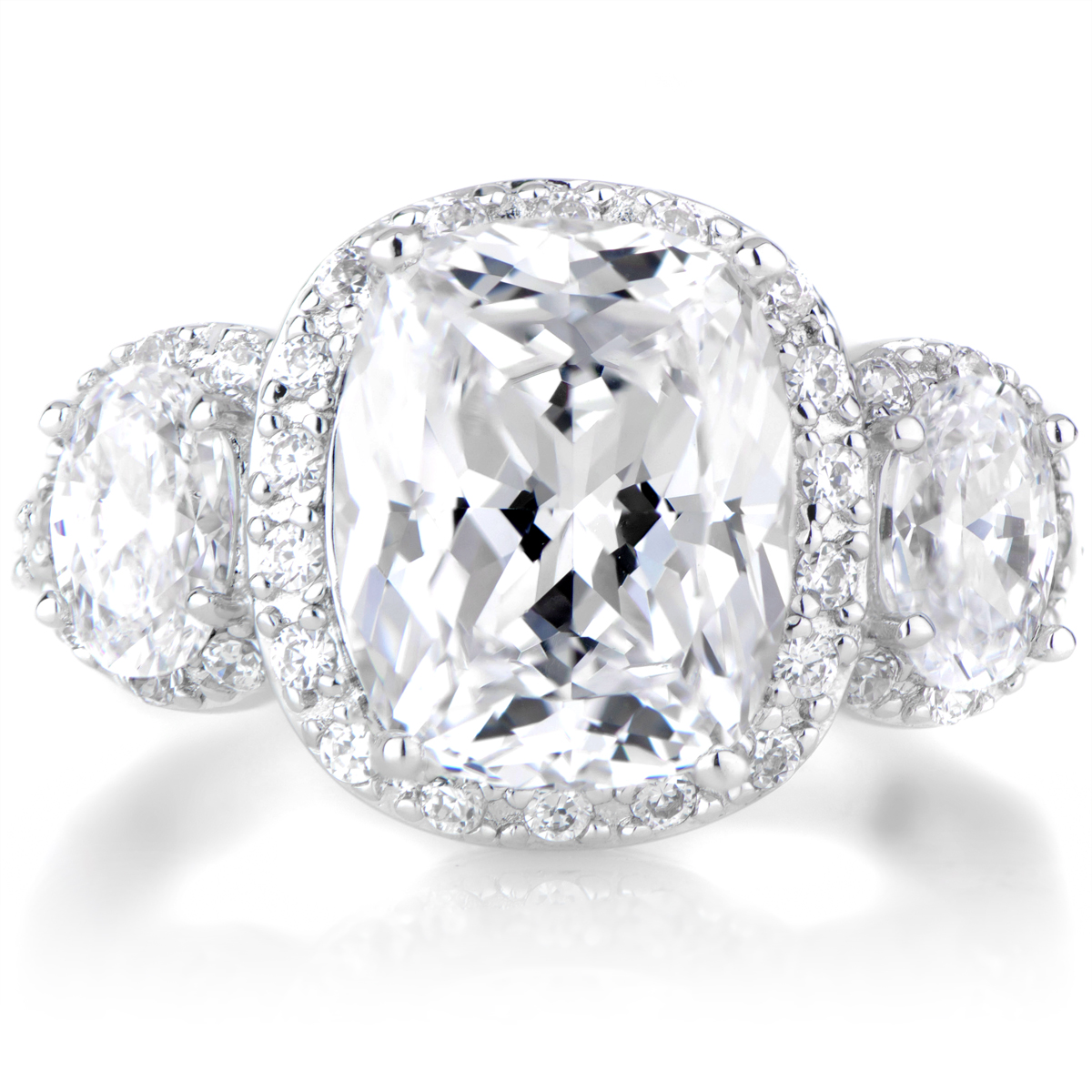 - Add urban flair to your look with this 3 Stone Cushion Cut Engagement Ring.