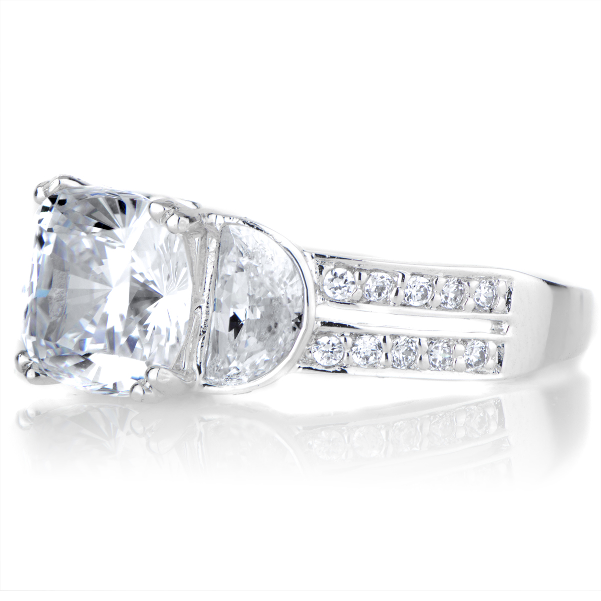 | Carats: | Cushion cut CZ approx 2.5 carats, Side CZ approx .5 carats |