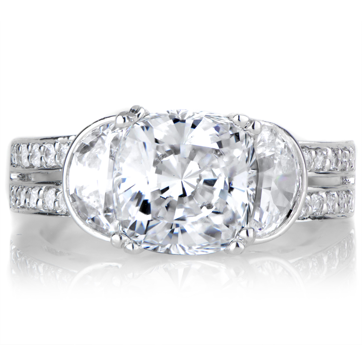 - Cushion cut CZs are 2.5 carats, and side CZs are .5 carats.