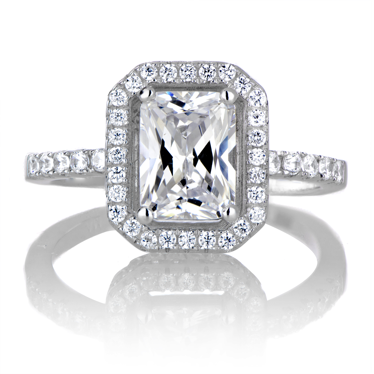 - Karda's 3.5ct Emerald Cut CZ Halo Engagement Ring offers a chic radiance and brilliance that any bride-to-be will love!