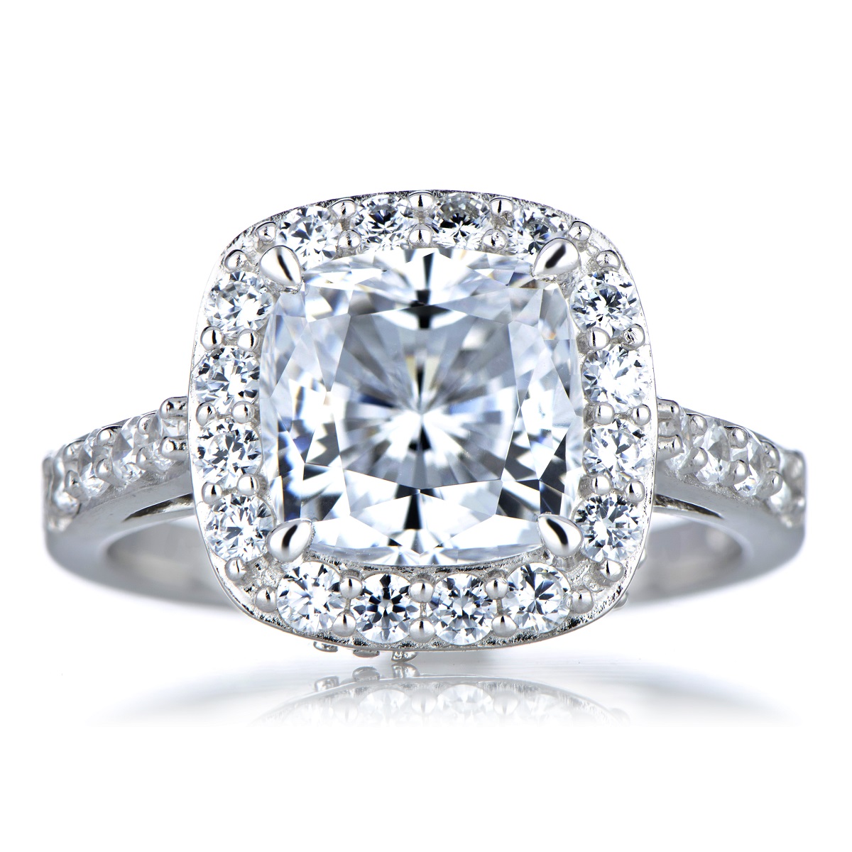 - EXCEPTIONAL QUALITY - Our customers say this ring is well worth the price as it is crafted with the highest quality cubic zirconias and finished with Rhodium Electroplating to give the appearance of Platinum. The 8mm version of this cushion cut halo ring maintains the same appearance and long lasting shine as the 10mm ring. If you love the design and are looking for an exquisite ring in a more discreet size, this is the one for you!
