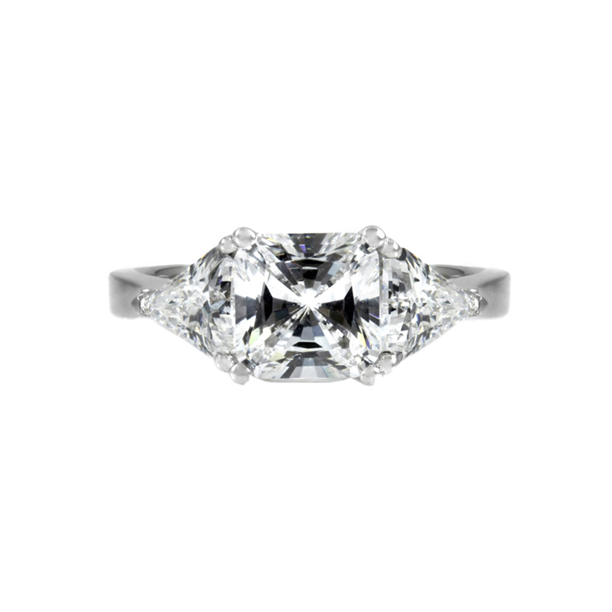Keane's Engagement Ring - 3 Stone Princess & Trillion Cut CZ has a 1 carat princess-cut center stone is framed by two trillion cut stones, forming one big section of shiny CZ!