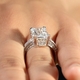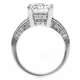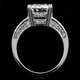 - The center stone measures three-carats and is bordered by a row of round cut CZs.