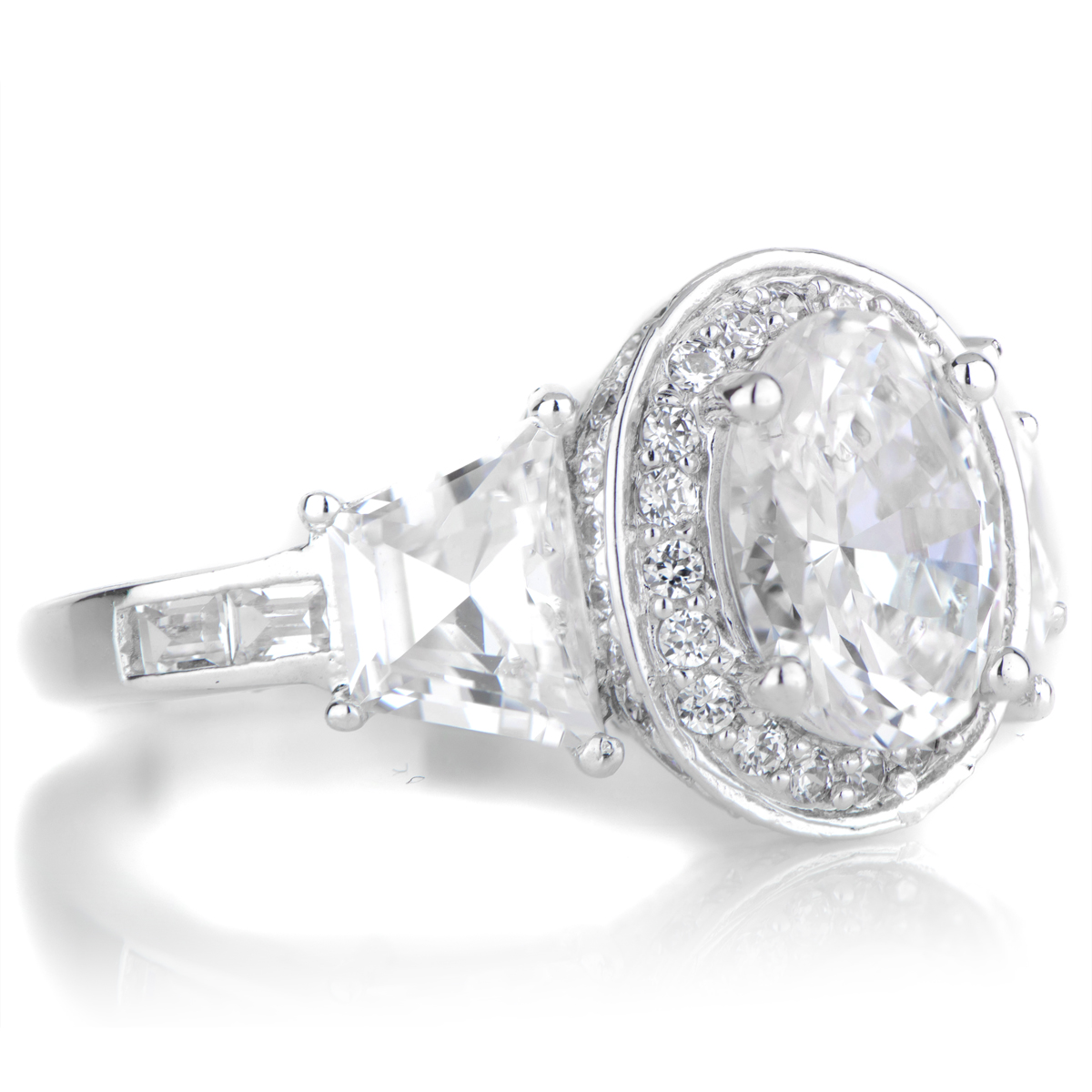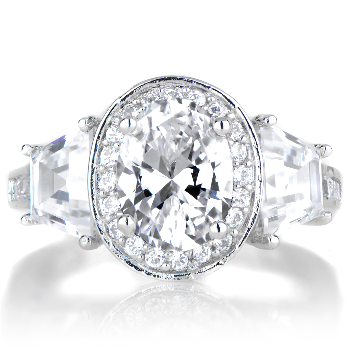 - This CZ diamond engagement ring features a whopping 8 mm oval cut, clear center stone that will take your breath away.