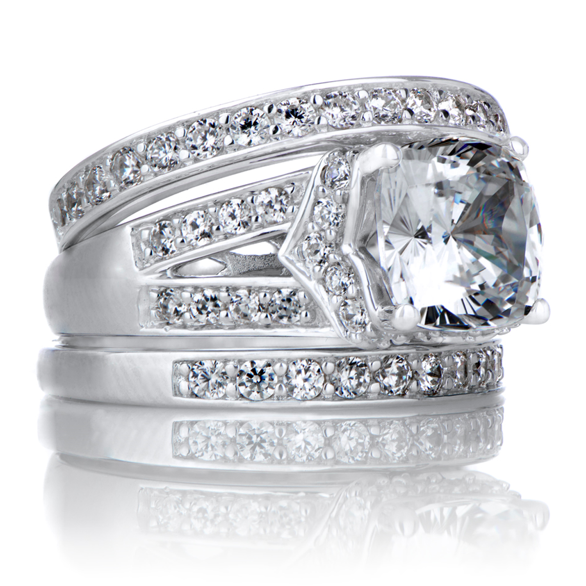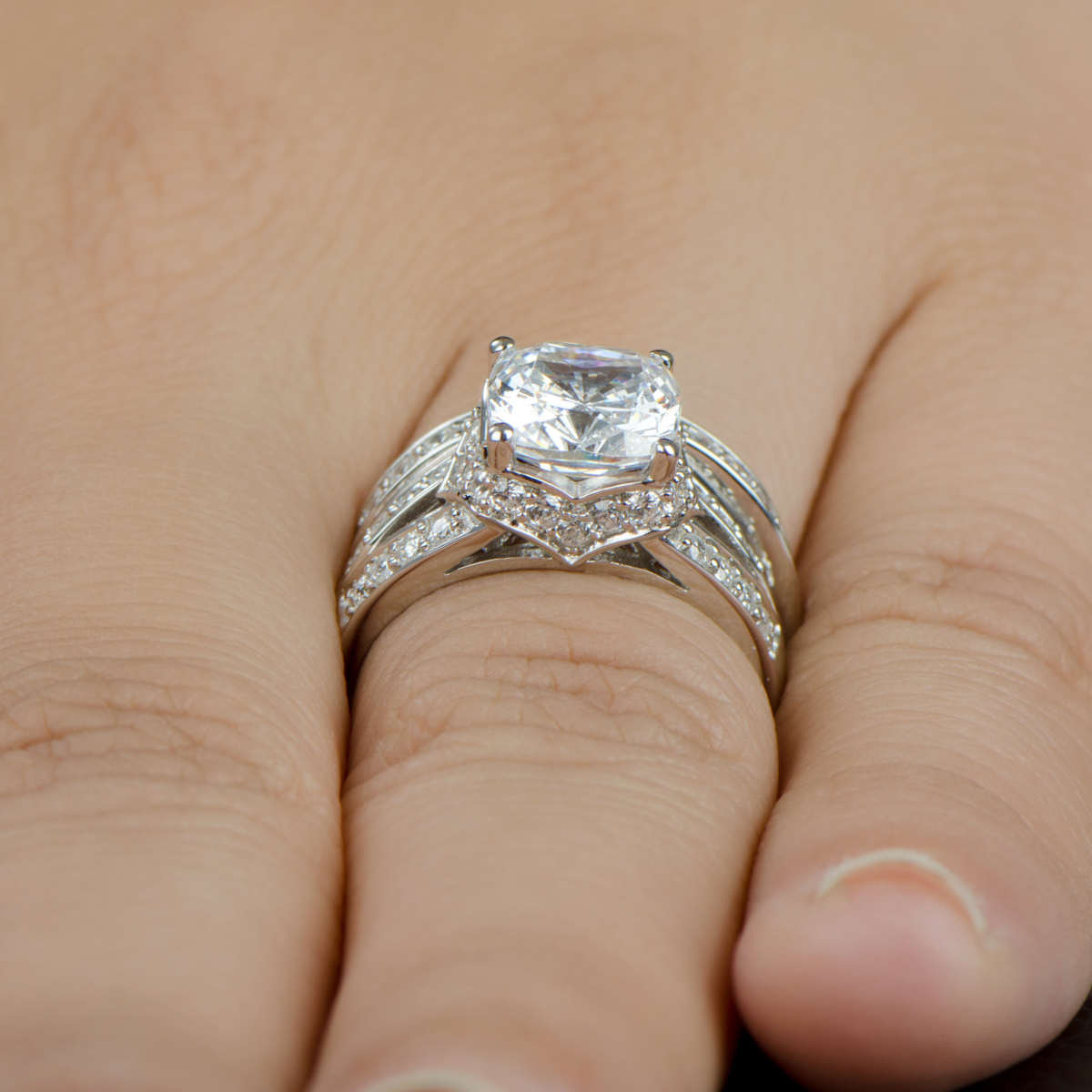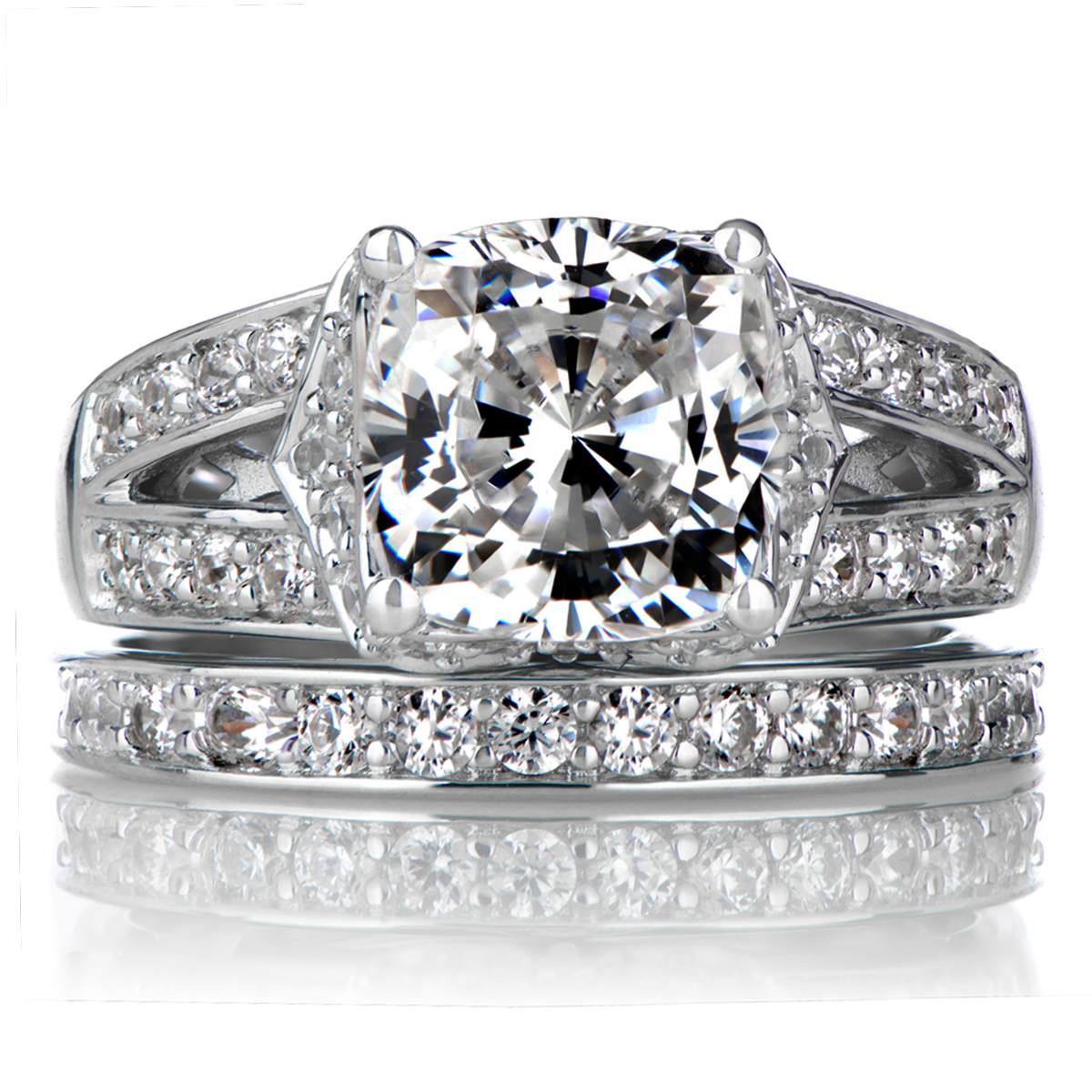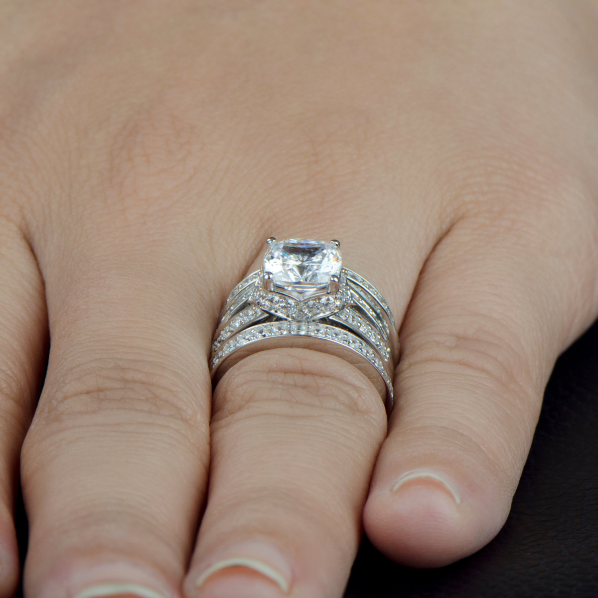 Wedding Ring Set - Cushion Cut CZ looks just as beautiful as a real diamond ring!