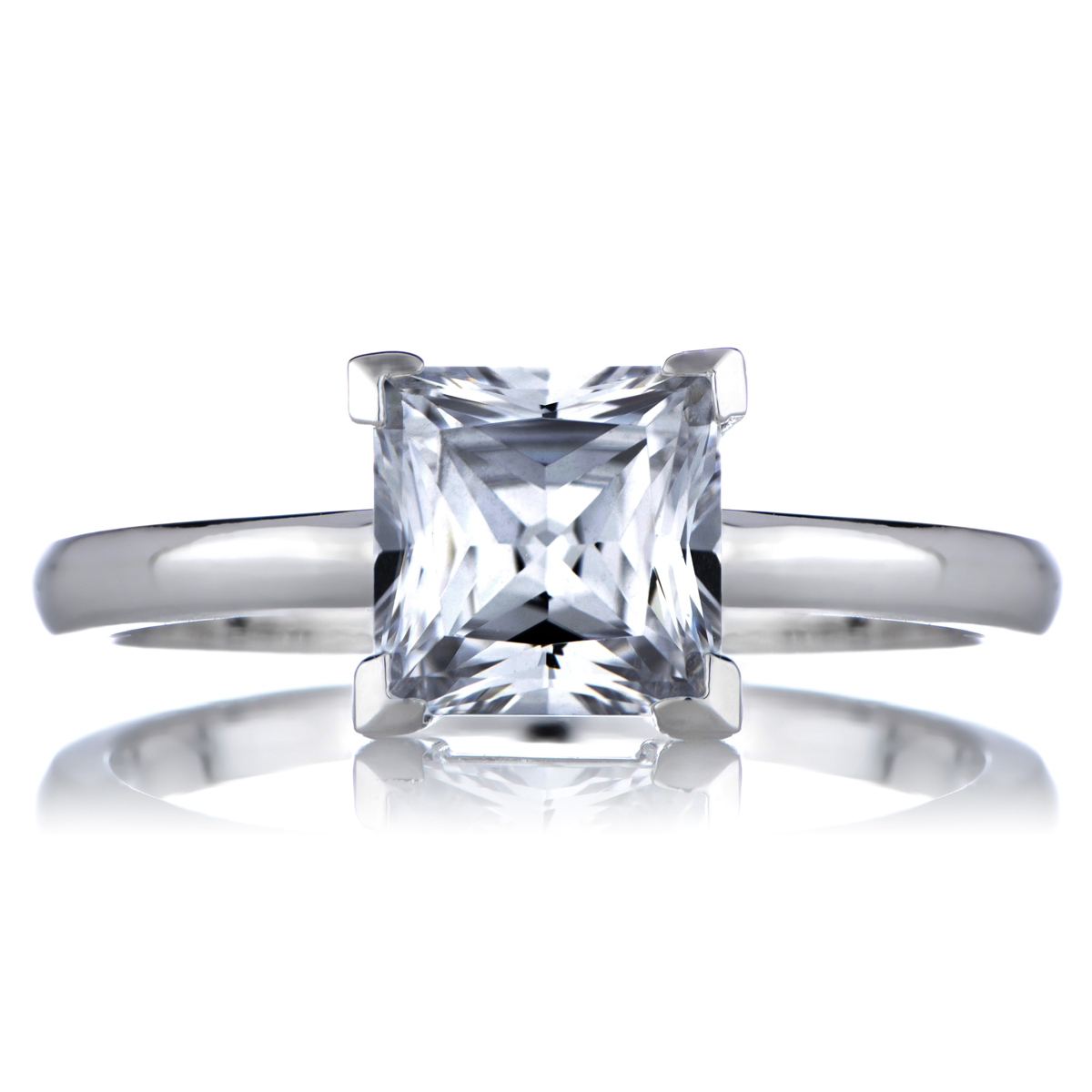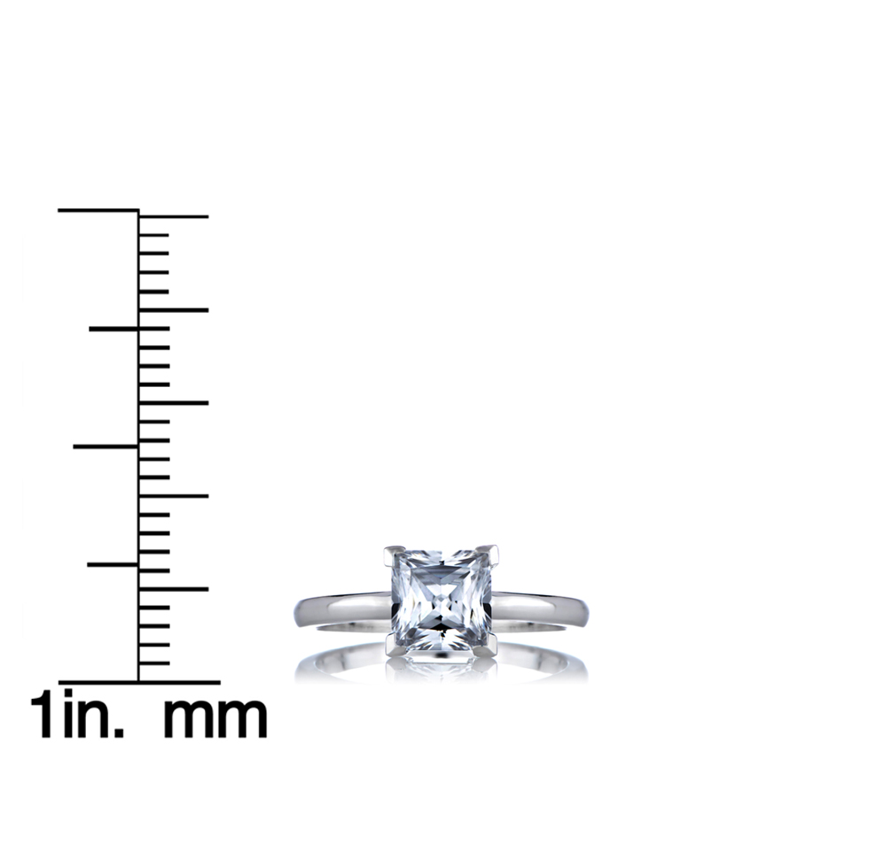 This princess cut CZ engagement ring is an instant classic! Prong set, princess cut CZ mimics a traditional diamond engagement ring. Cubic Zirconia ring. Sterling silver jewelry.