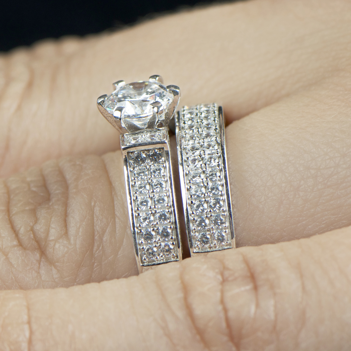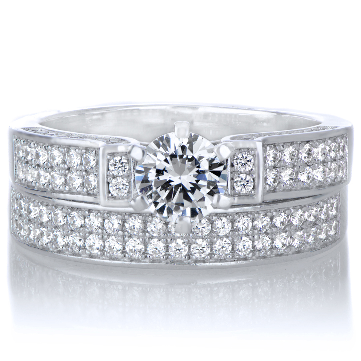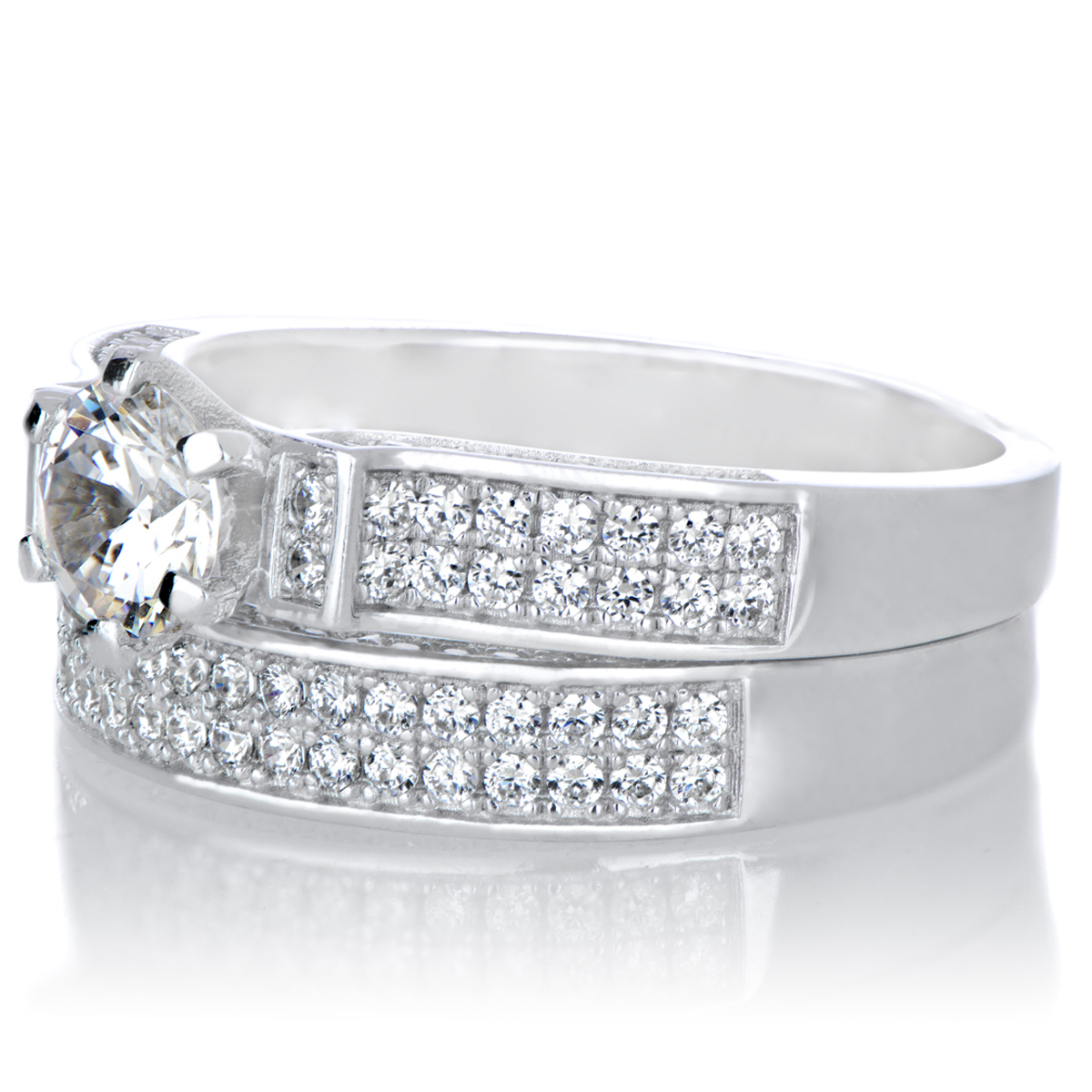 Nivena's Modern Style Round Cut CZ Pave Wedding Ring Set