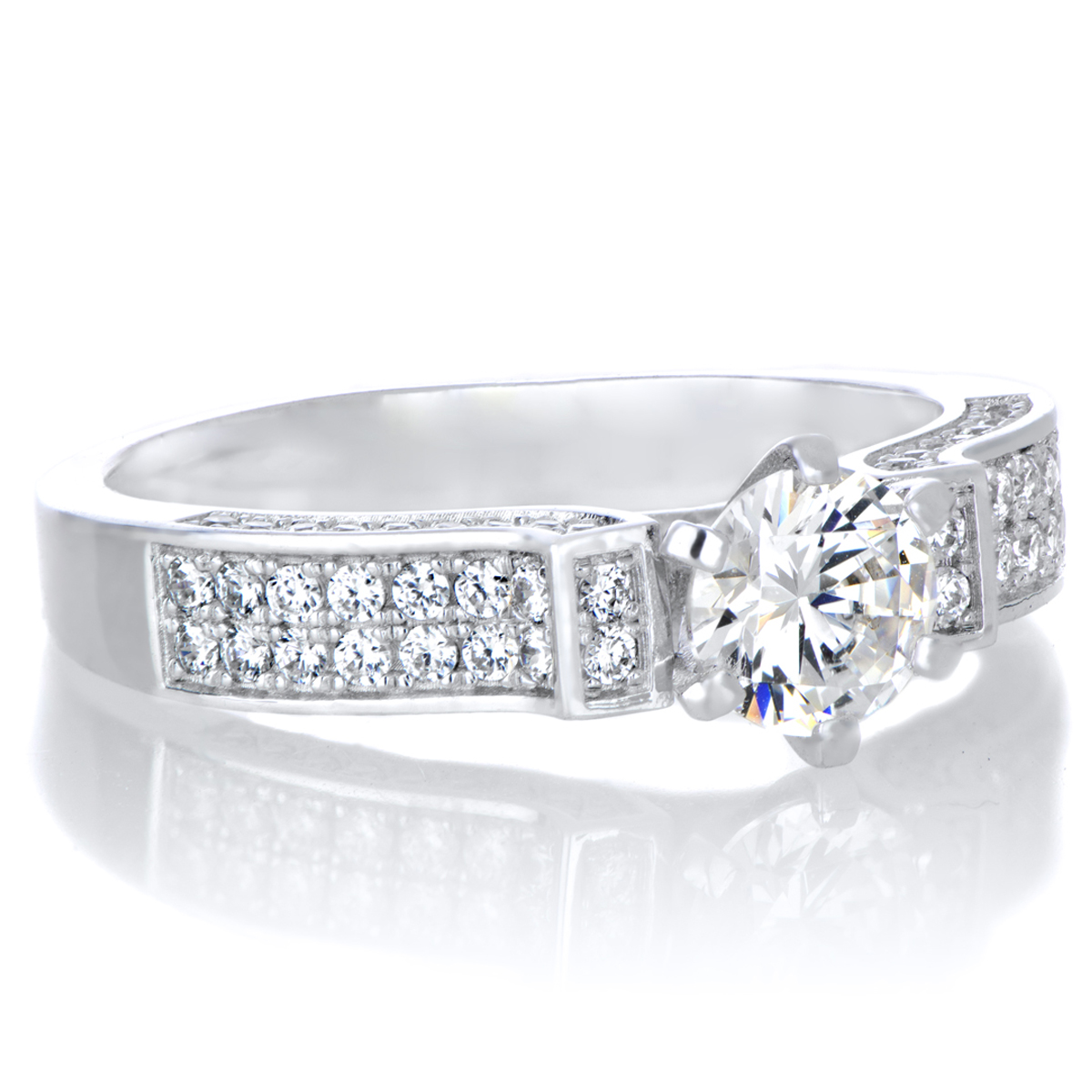 | Carat: | Round center CZ approx .75 carats, Round side CZ approx .02 carats |