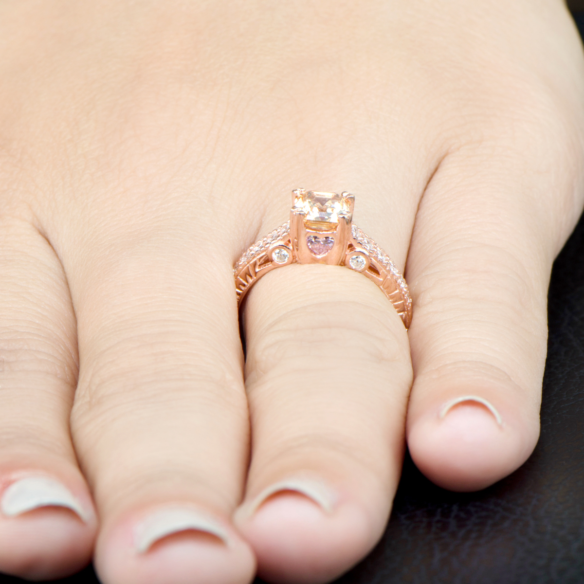 - Fall head over heels in love with Shayla's Rose Gold and Peach CZ Engagement Ring.