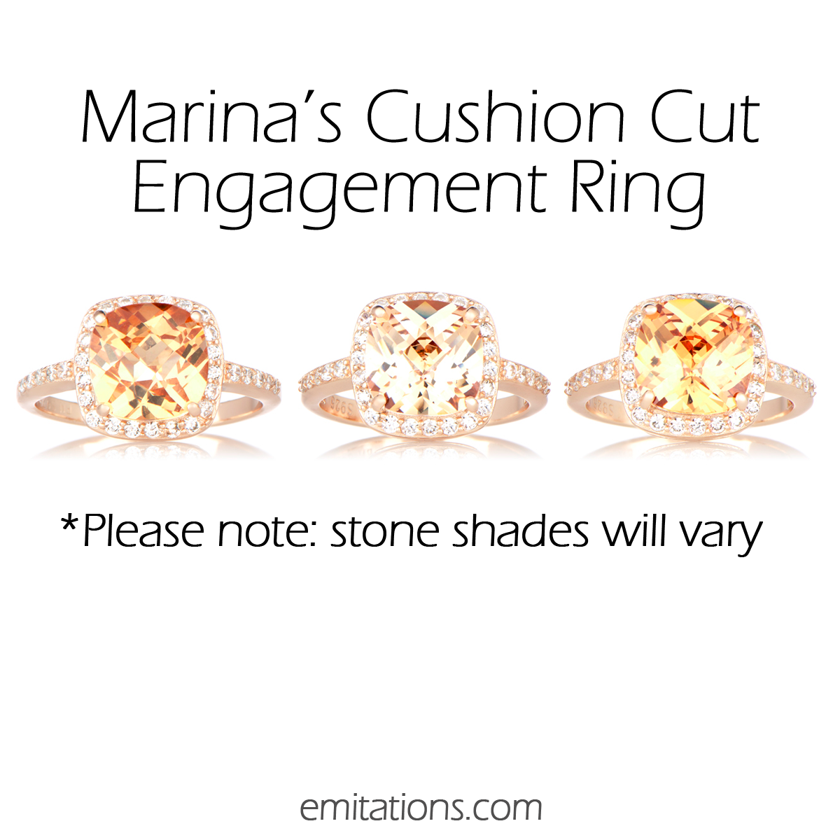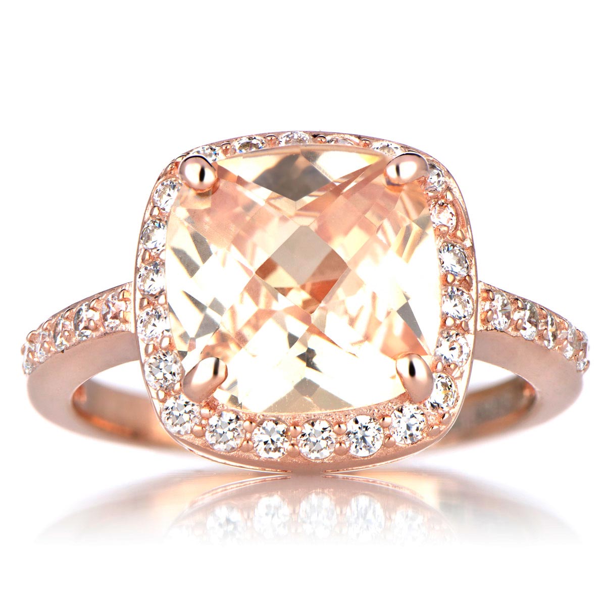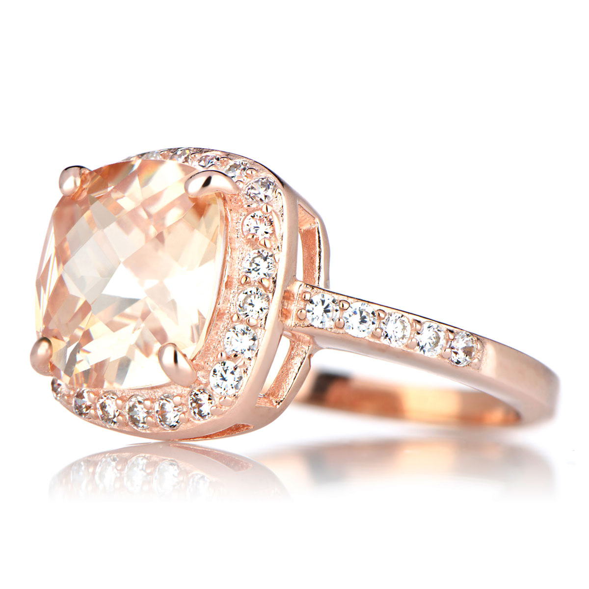 - Looking for flawless elegance? Try Marina's Rose Gold Cushion Cut Engagement Ring - Peach CZ.