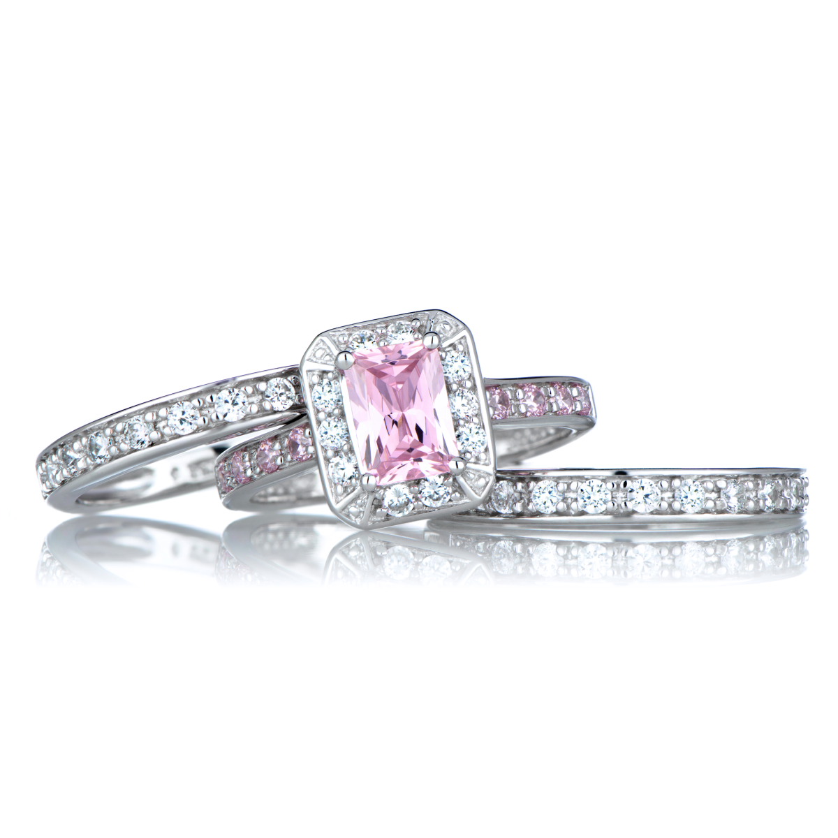Pink Cubic Zirconia Wedding Ring Set