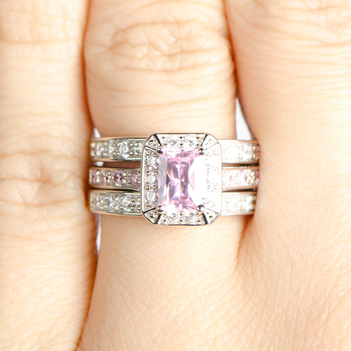 - Dazzle in pink goodness with Vilda's Pink CZ Wedding Ring Set.
