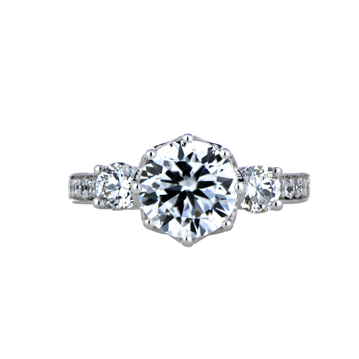 Renalde's 3 Stone Flower Set CZ Engagement Ring