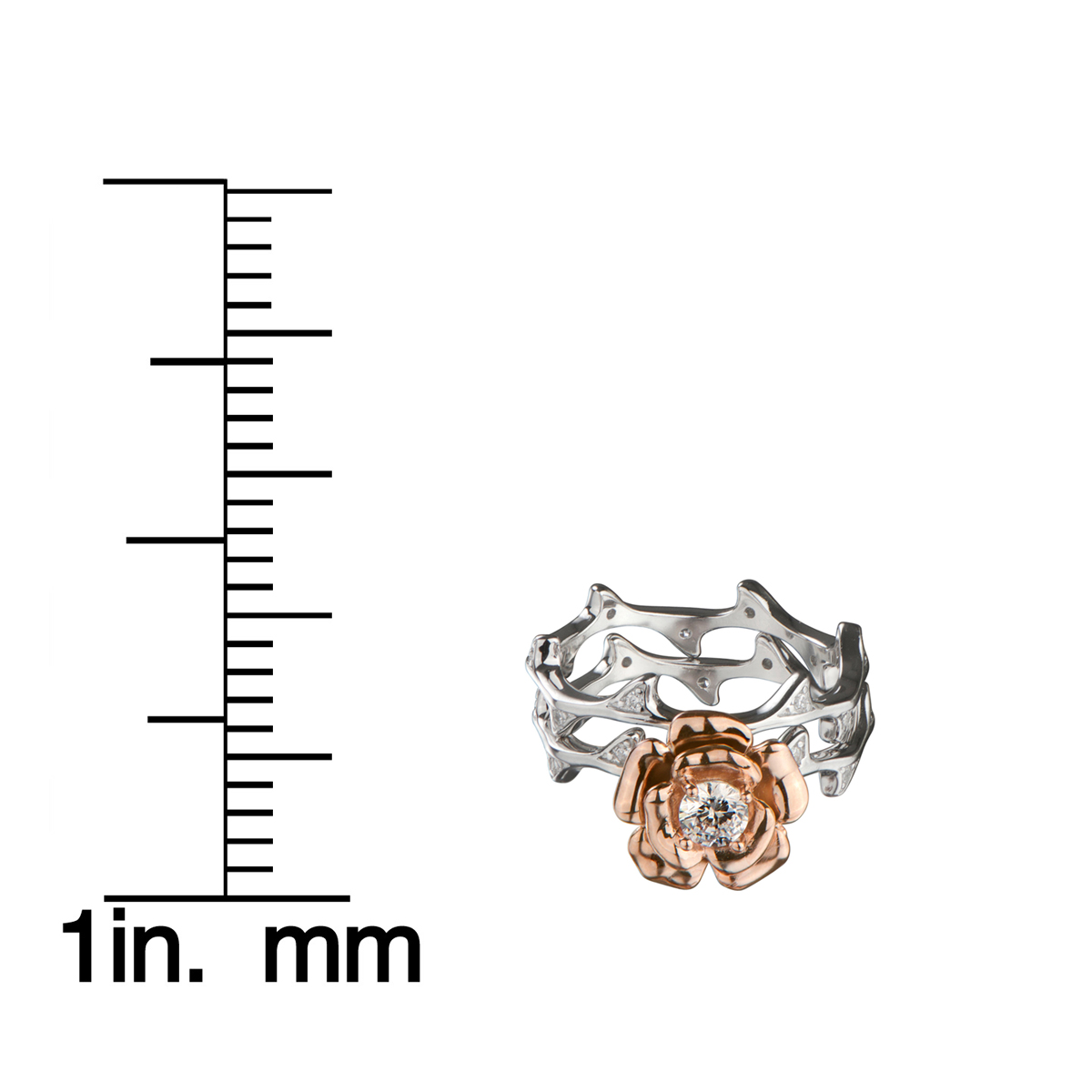 - This Two Tone Rose Gold and Silver Flower CZ Ring set makes a special and unique gift.