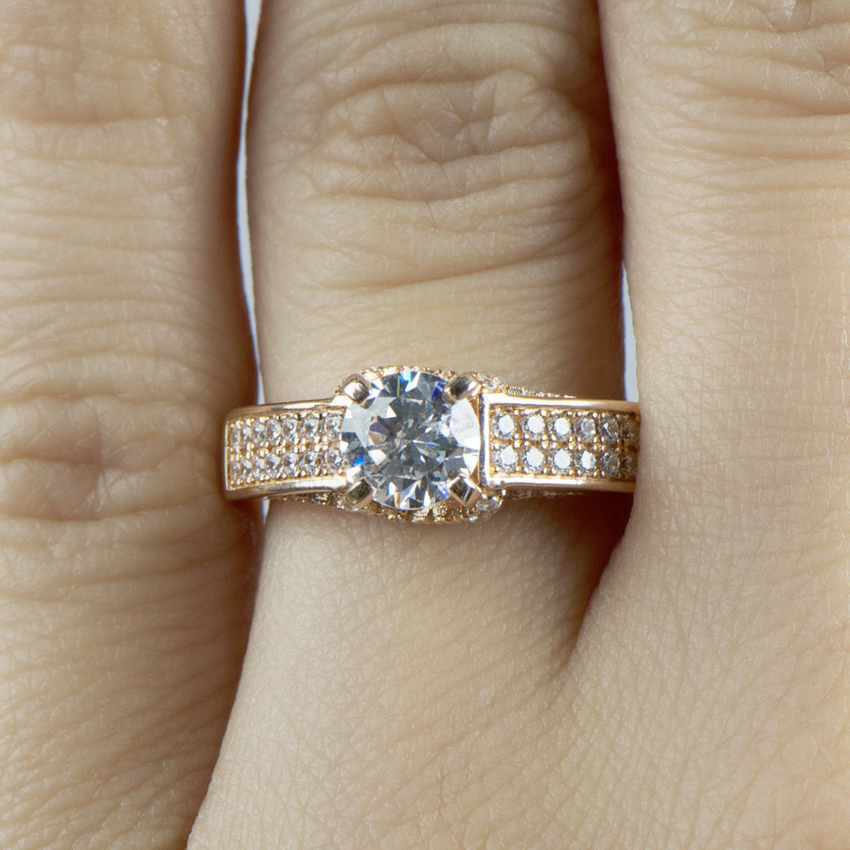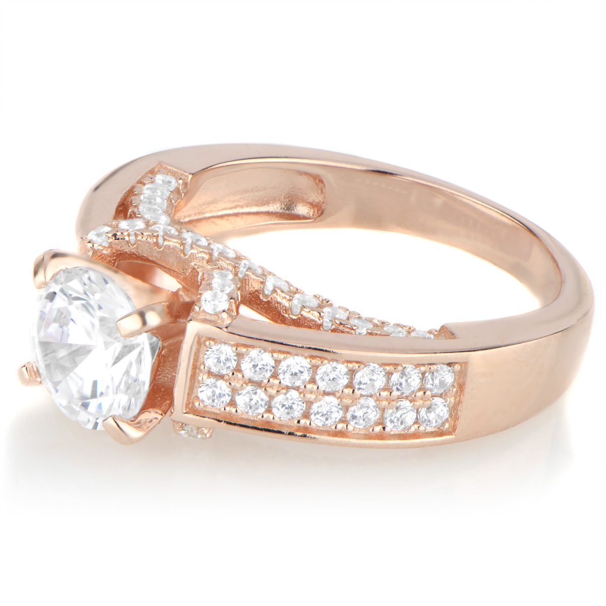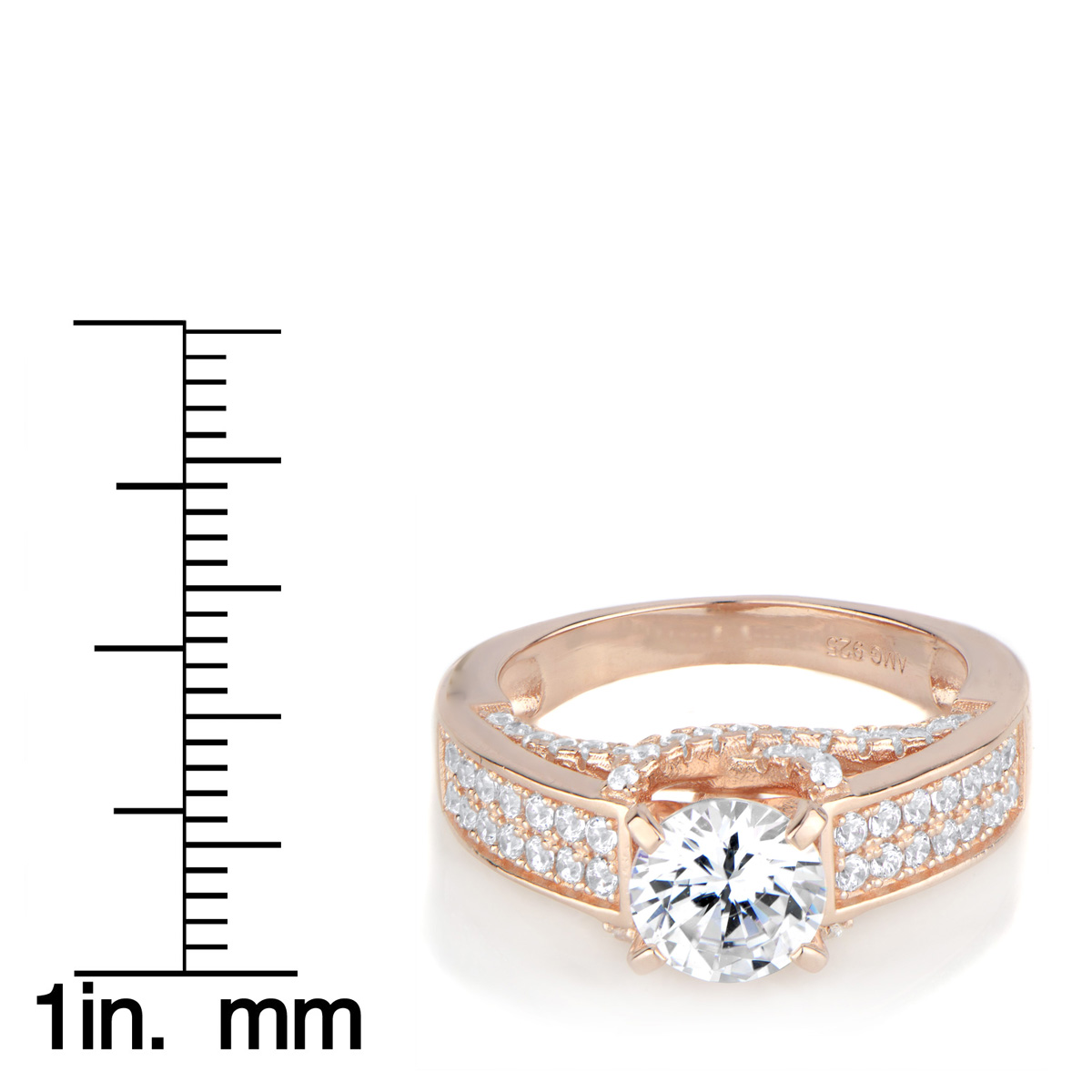 - The 925 sterling silver, rose Gold tone ring features an array of CZ sparkle at every angle.