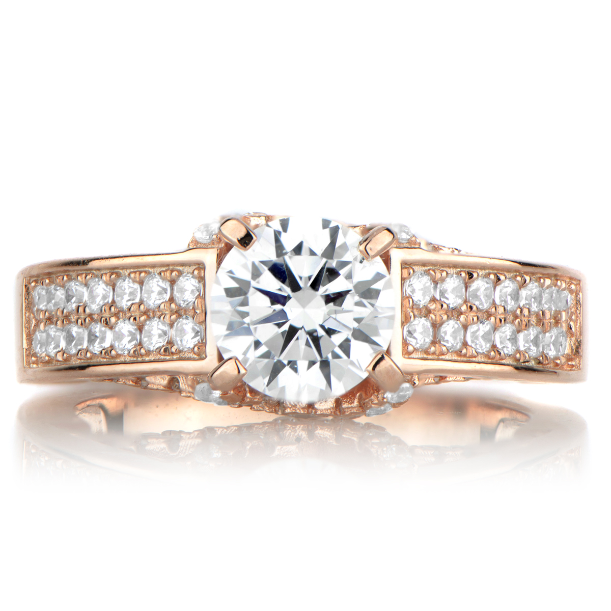 - Starting at the setting you'll be mesmerized by the criss-crossing petite size CZs. Down the band you'll notice two rows of even more petite size CZ sparkle leading to a miraculous 1-carat round cut CZ center stone.
