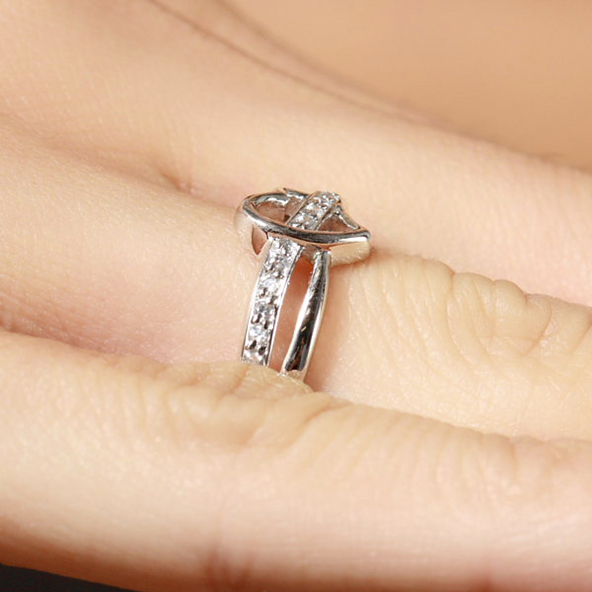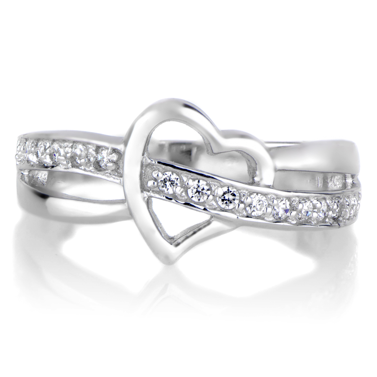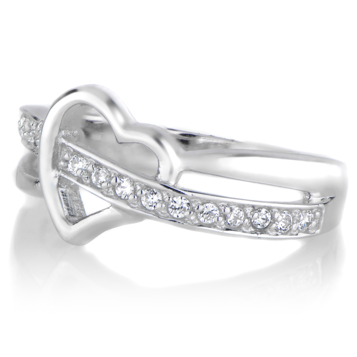 This sterling silver heart ring features a partial split band design.