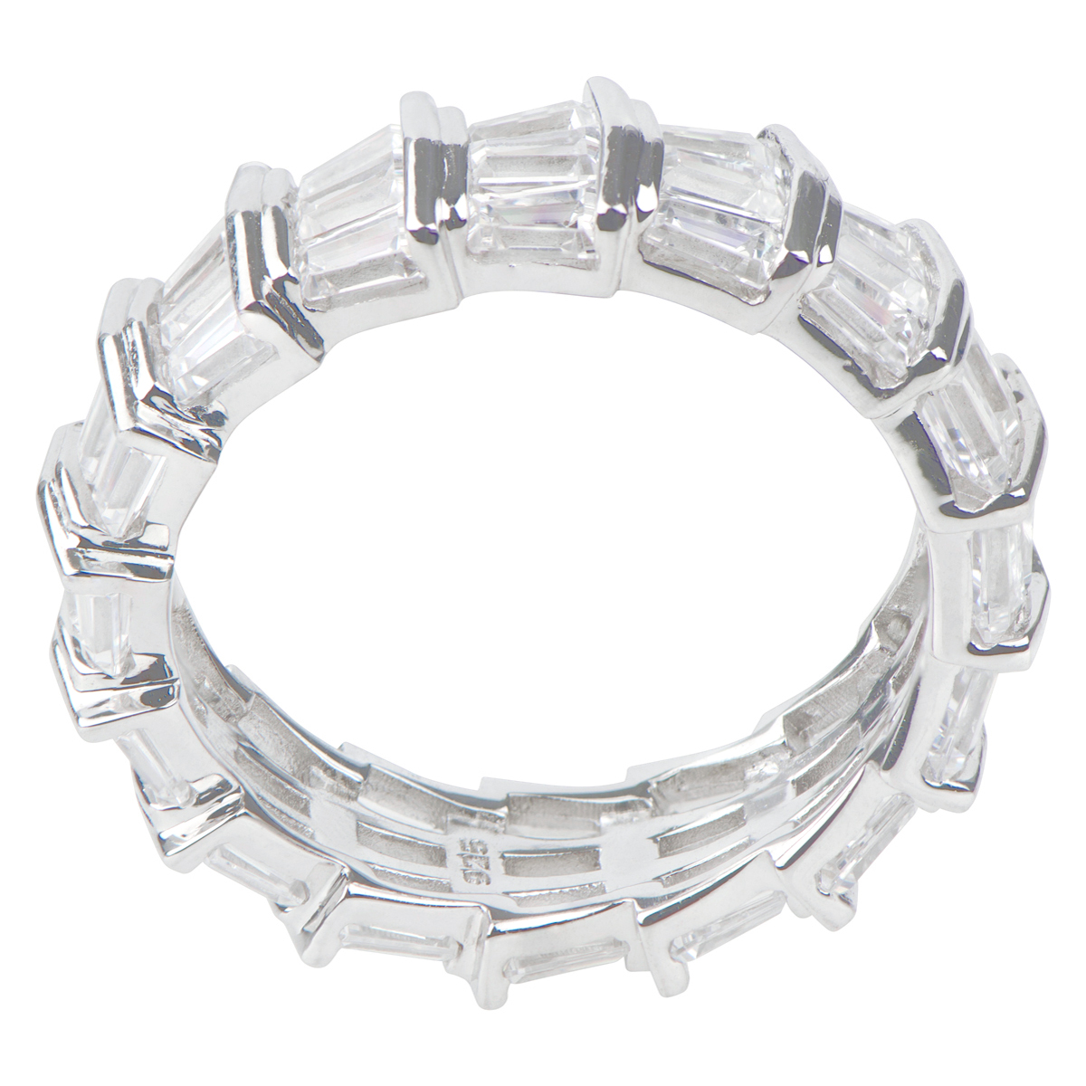 - Go for the sleek modern look of Brandy's Silver Baguette CZ Eternity Band.