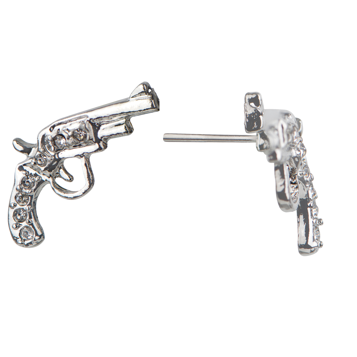 Silver tone Pistol Gun CZ Stud Earrings