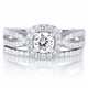 - The sterling silver wedding ring set features an engagement ring with a unique split band with complementing ring guard band.