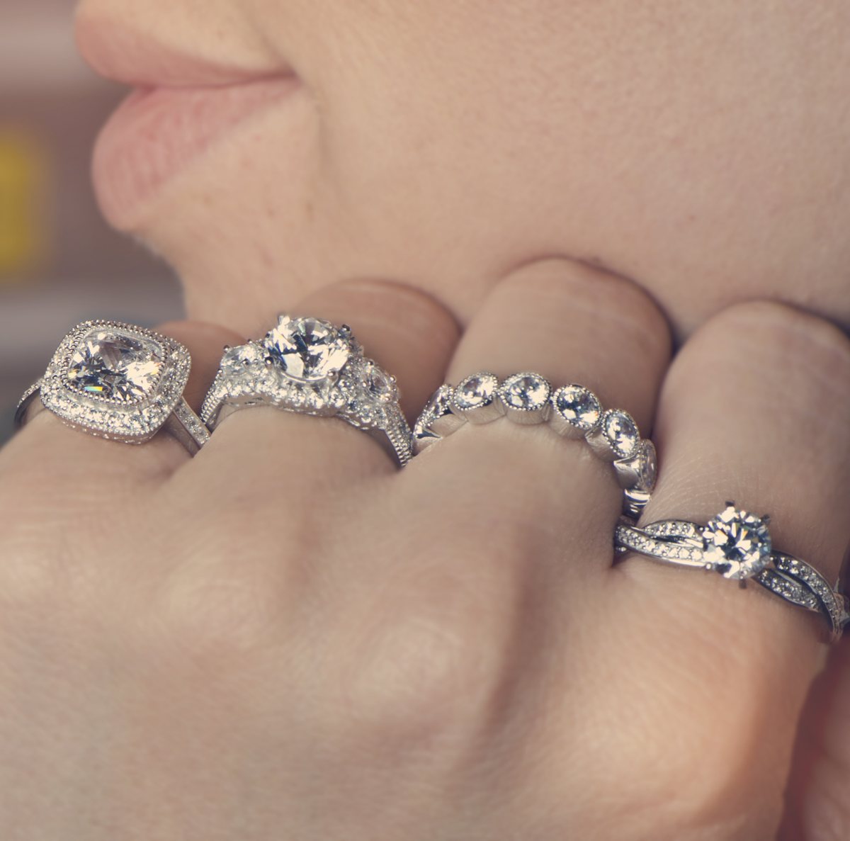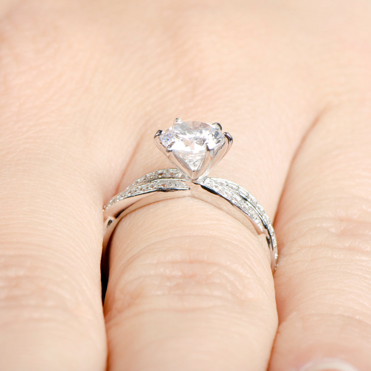 This is a gorgeous set and looks great on your finger. I love mine, but can't wear it every day. Enjoy the newness because the engagement ring will not last. The prongs are made so cheaply that they will fold back and completely leave the stone to fall out. The prongs will also slide around and end up with two right beside each other, also leaving the CZ vulnerable to fall out. Every time those prongs move they are weakening and getting closer to breaking off completely.