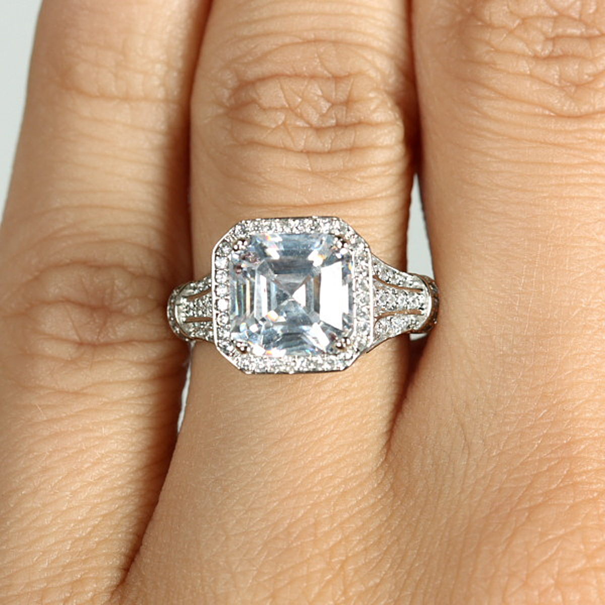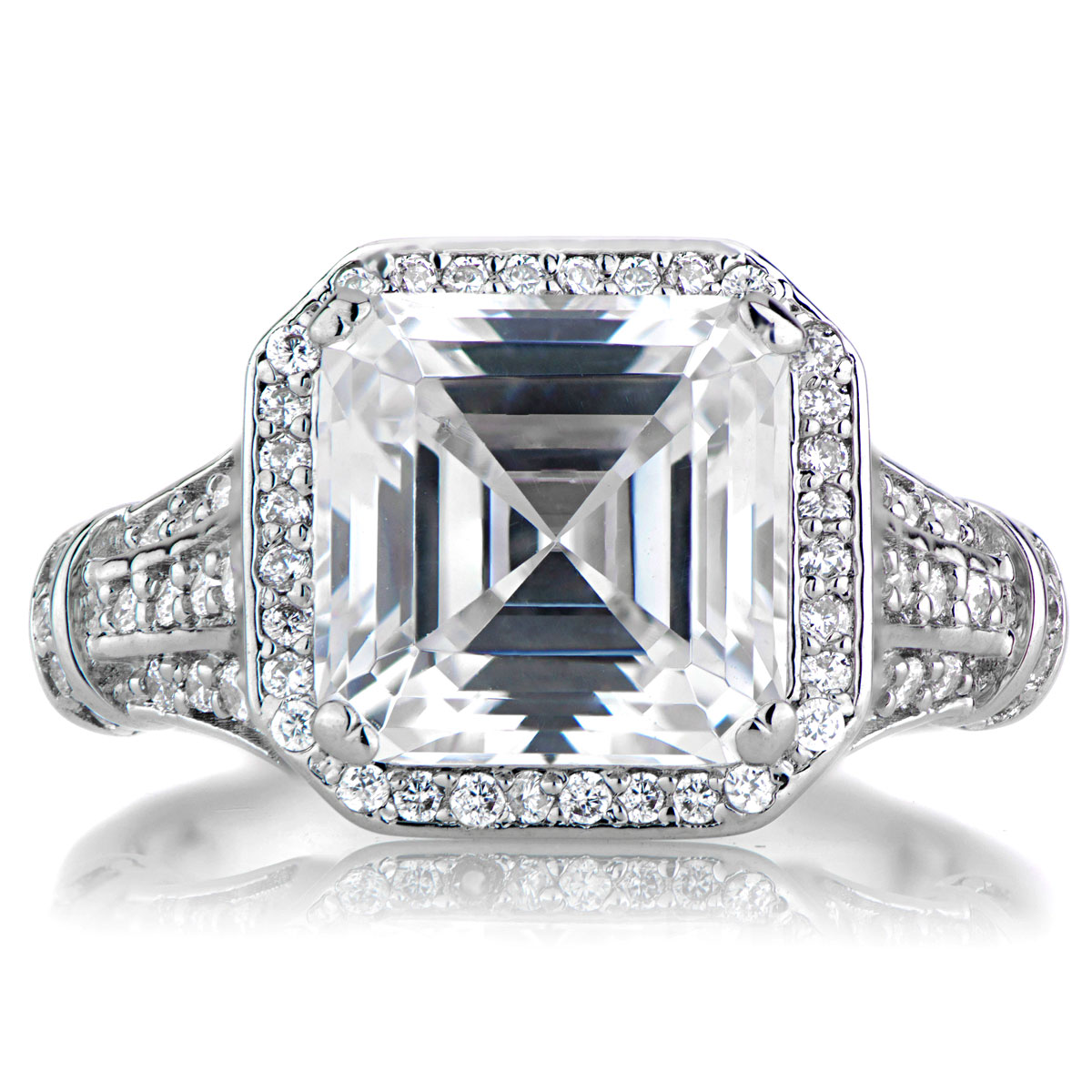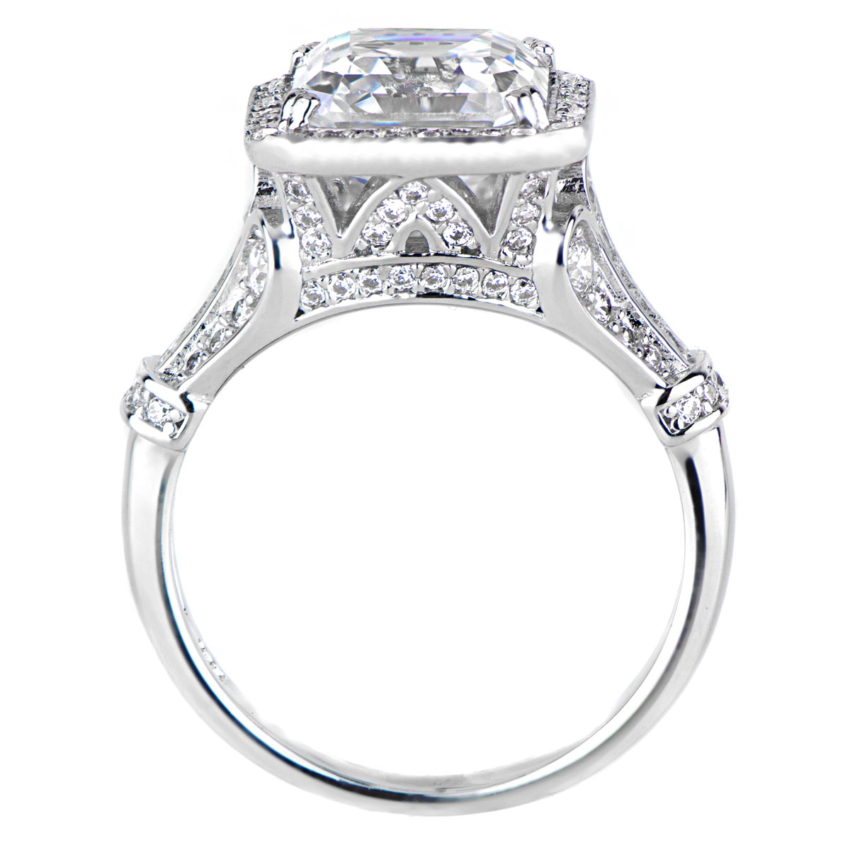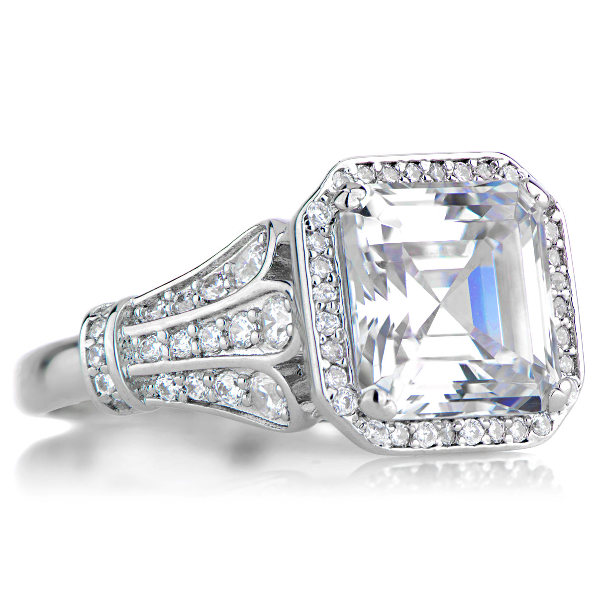 Go classic with Barbara's Estate Style Asscher Cut Engagement Ring. Get vintage glamour with this stylish and sophisticated ring that's an absolute stunner! Cubic Zirconia ring. Sterling silver jewelry.
