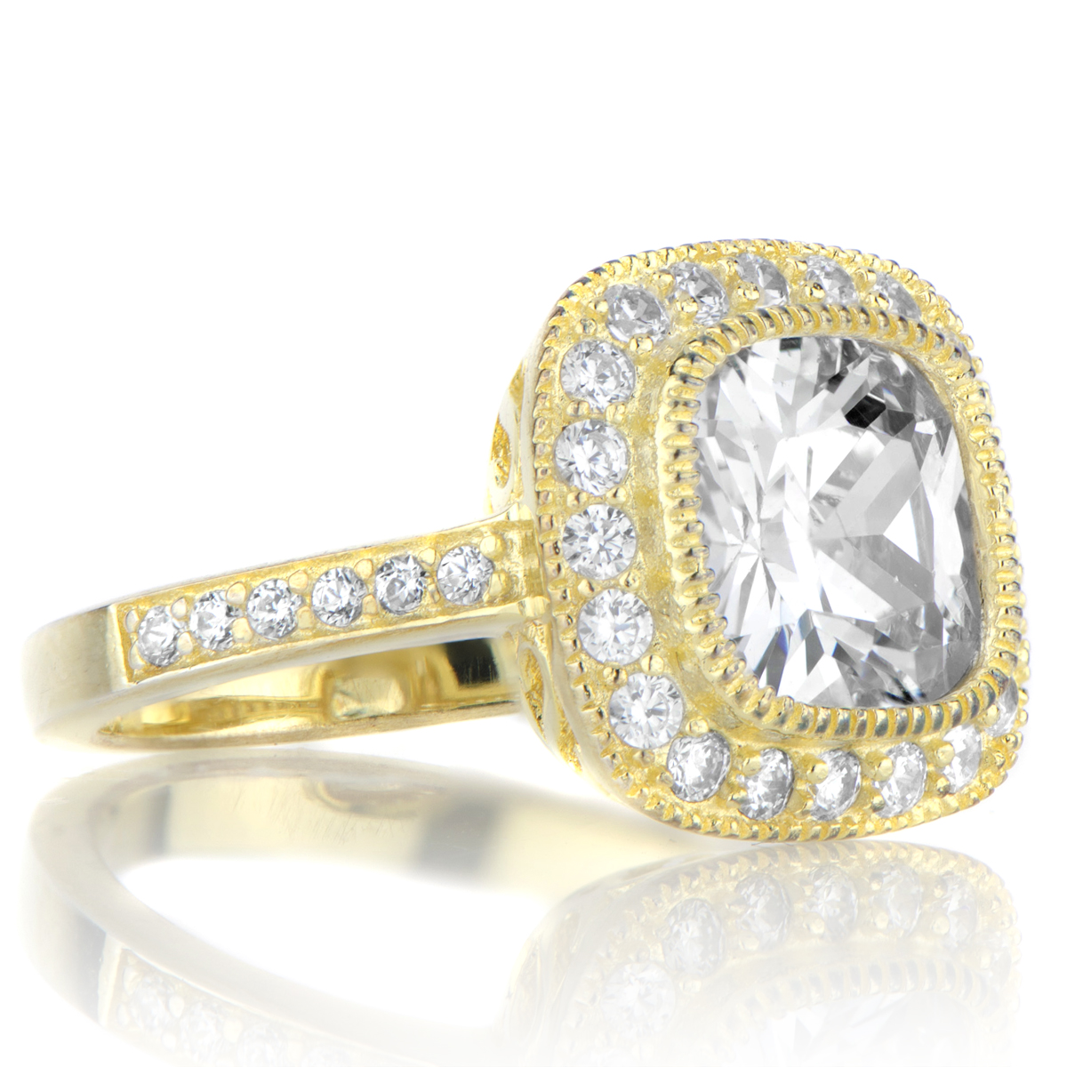 Gina's Vintage Style Cushion Cut CZ Engagement Ring - Goldtone