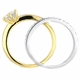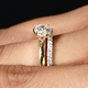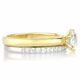 ANSWER: There are about twenty smaller stones that go halfway around the band. My only complaint about this ring is that the gold shown on the solitaire in the picture is not the same gold tone of the actual ring. My ring was more of a bright yellow, which in my opinion made it look fake. I hope this helps. by Kirk L 5/28/2013