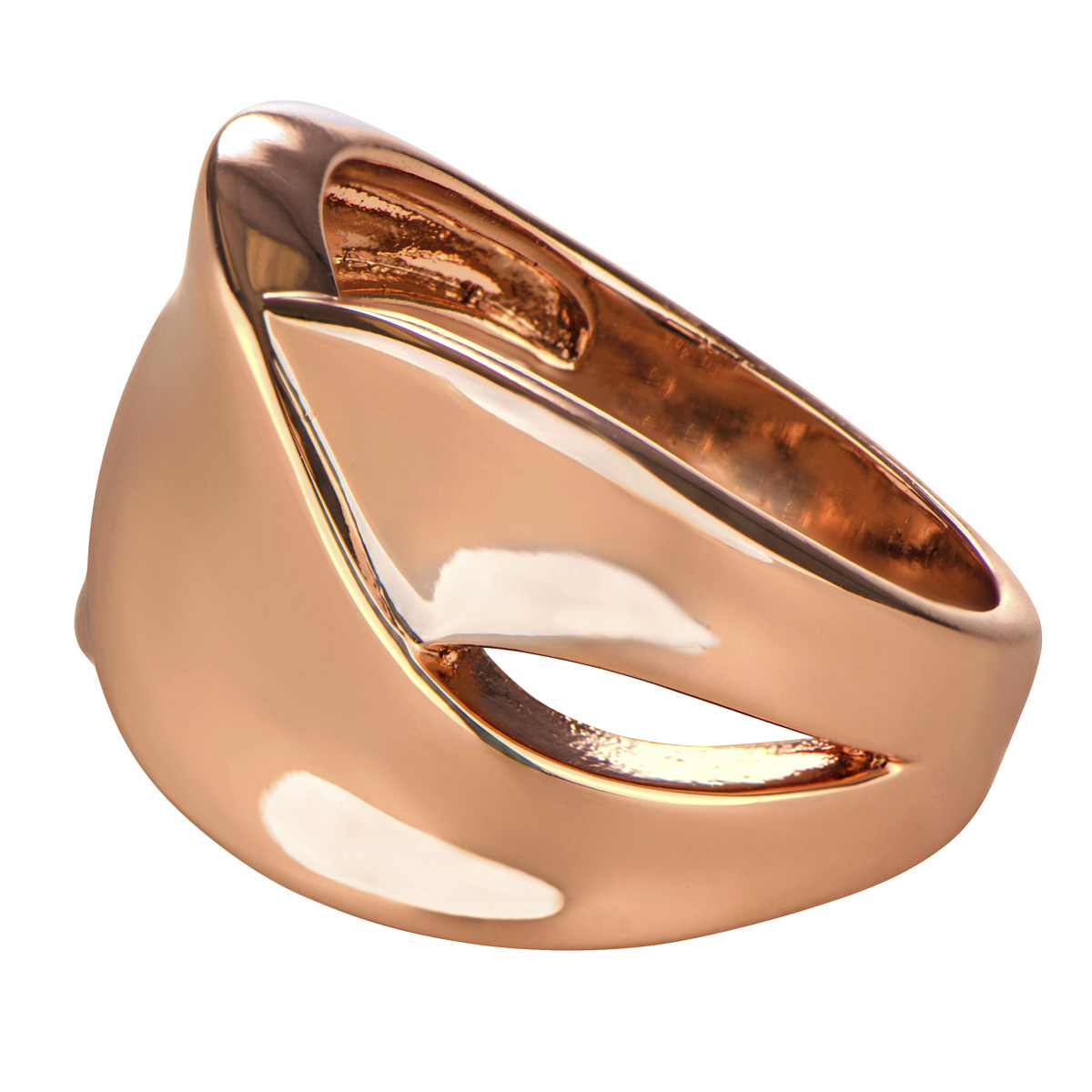 - Add a bit of color with Pearla's Rose Goldtone Wide Band ring.